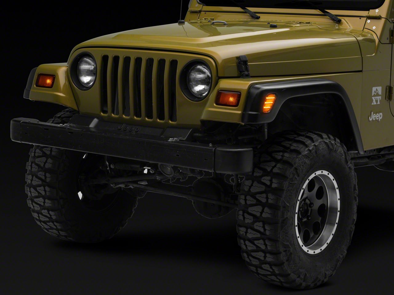 A set of Axial Clear LED Side Marker Lights are a simple and effective way to upgrade the exterior styling of your 1997-2006 TJ Wrangler. These Side Marker Lights feature three rows of razor sharp LEDs that replaces the unsightly hot spot of the factory lights. These Axial Side Marker Lights not only look great, but they are also much brighter than the weak factory incandescent lights for increased visibility day or night. Raxiom manufactures its Side Marker Lights from injected molded ABS plastic housings for durability, and use crystal clear polycarbonate lenses for impressive good looks. These Side Markers employee high output amber SMD LED strip lighting for super bright illumination. Raxiom ensures that its Side Marker Light housings are weather sealed to prevent dirt and moisture from harming the state of the art electronics found inside. Raxiom designed its LED Side Marker Lights to be a direct plug and play upgrade for your TJ's original factory lights. There is absolutely no cutting, splicing or resistors required. Just pop out the old factory side markers and disconnect the wiring harness. Plug the harness into the back of your new LED Side Markers and snap them in place of the old ones. It's that simple!