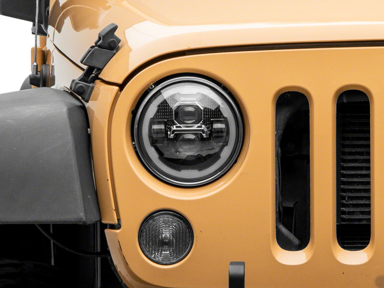 Raxiom J173078 - 07-18 Jeep Wrangler JK Axial 7-In LED Headlights w/ DRL Turn Signals- Blk Housing (Clear)