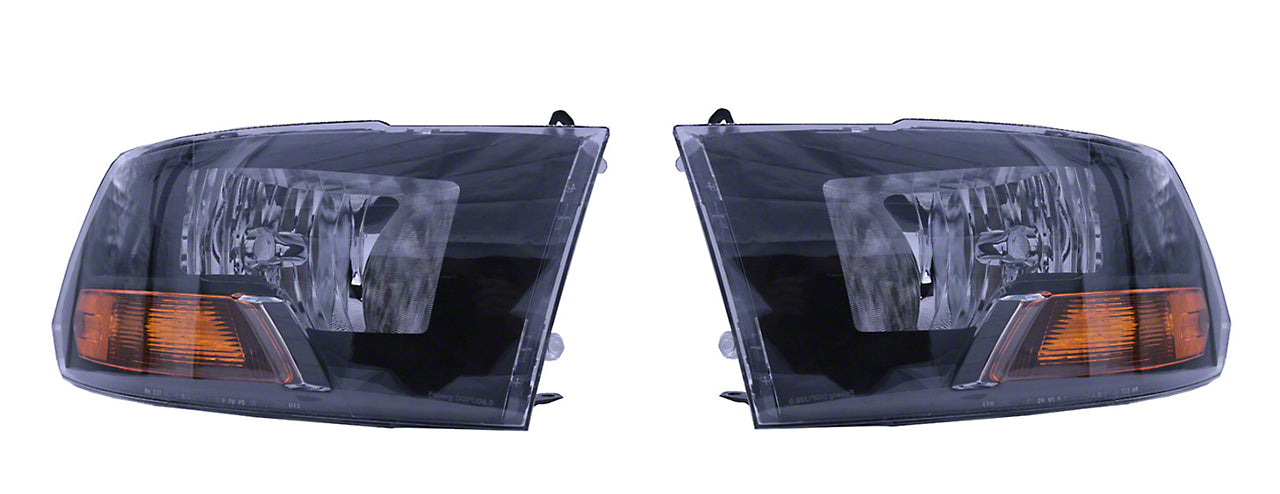 Improve your nighttime driving visibility just by replacing your old weathered, worn out and yellowing factory headlights with a brand new pair of Axial Euro Style Headlights. These Headlights feature a clean design with black housings and clear lenses that will give your RAM a more exciting appearance. Manufactured from OEM grade materials, these Headlights are assembled to precise standards for long-lasting quality. These Headlights feature durable, black polypropylene plastic housings with multi-faceted chromed reflectors and crystal clear polycarbonate lenses. Each light is weather-sealed to prevent dirt and moisture from harming the state of the art electronics. These Headlights will not only bring a fresh new look to your RAM, but they also meet or exceed the strict guidelines set forth by the U.S. Department of Transportation (DOT) and the Society of Automotive Engineers (SAE), making them legal for street use. These Headlights were designed to be a direct plug and play replacement for your RAM's original factory housings. Be sure to have your headlights properly aligned before driving at night.