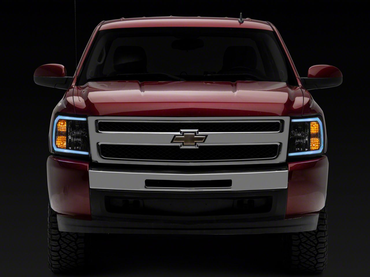 Improve the appearance and nighttime driving visibility of your 2007-2013 Chevrolet Silverado 1500 just by replacing your old weathered, worn out, and yellowing factory headlights with a brand new pair of Axial Headlights that feature black housings and clear lenses. With an impressive LED Daytime Running Light (DRL) design, these Headlights will give your Silverado 1500 a whole new look. Manufactured from OEM grade materials, these Headlights are assembled to precise standards for long-lasting quality. These Headlights feature durable, black ABS plastic housings with multi-faceted chromed reflectors, clear polycarbonate lenses, and modern LED lighting. Each housing is weather-sealed to prevent dirt and moisture from harming the state of the art electronics found inside. These Headlights were designed to be a direct plug and play replacement for your vehicle's original factory housings. The DRL light bar portion of the headlight will require splicing into your running lights for operation. Please be sure to have your headlights properly aimed/aligned before driving at night.