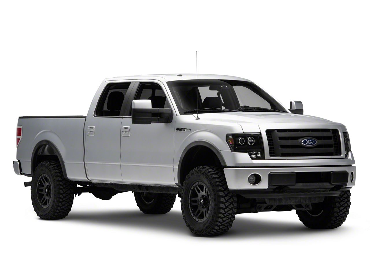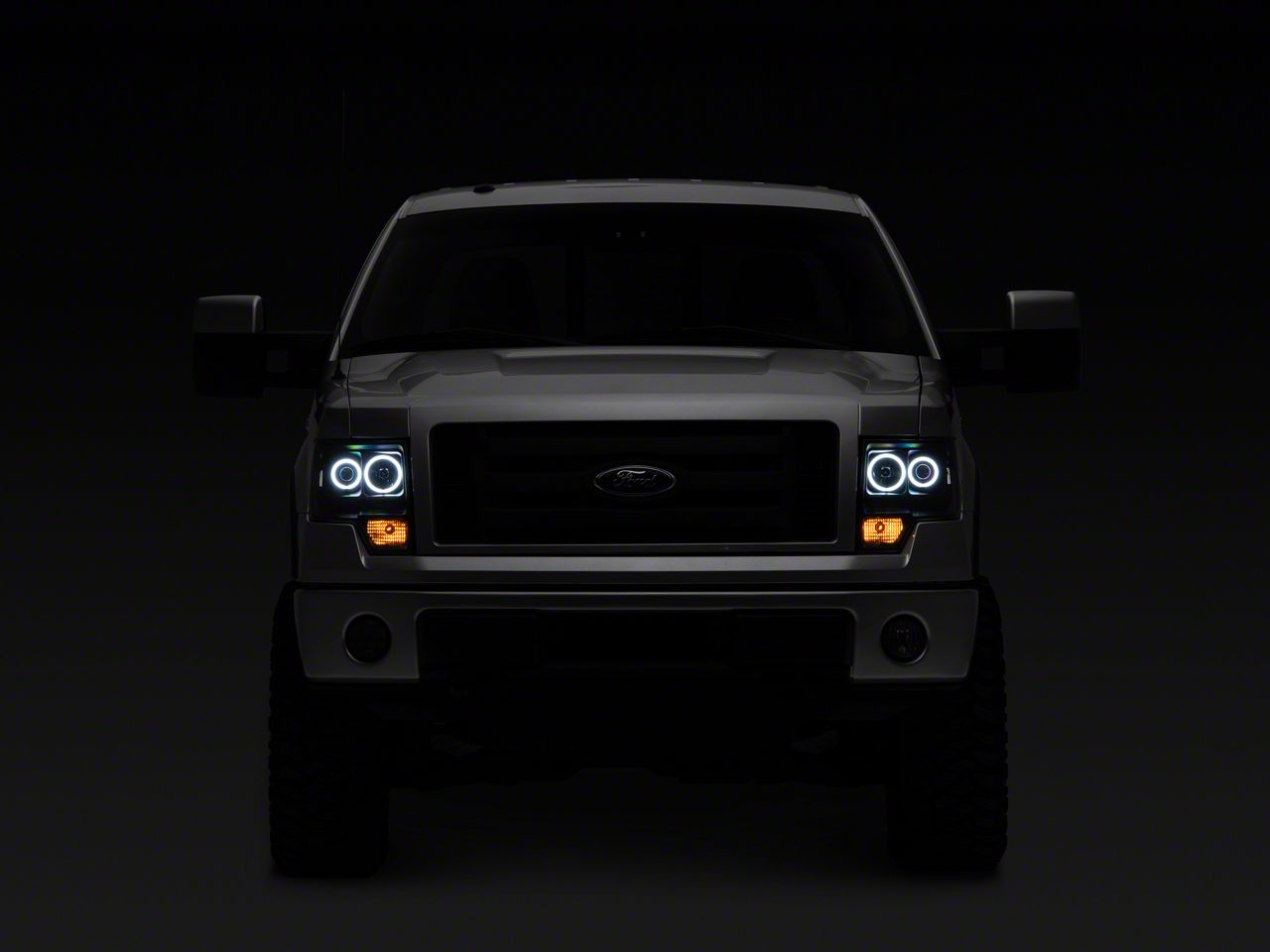Experience a brighter field of vision while giving your F-150 a boost in style by installing a set of Black Super White Halo Projector Headlights. These Lights will reduce eye fatigue and increase confidence in driving, especially through low-visibility conditions. Additionally, each assembly stylishly sports round primary headlights and bright halos that appealingly complements the overall angular configuration. Utilizing a projector lens design, these Headlights will light up the road ahead with a bright focused beam for better nighttime visibility. While the stylish dual halo accent ensure that you are visible day or night by distracted drivers. The super white halos are about as bright as it gets. Manufactured from OEM grade materials, these Headlights are assembled to precise standards for long lasting quality. These Projector Headlights feature durable, black plastic housings with crystal clear polycarbonate lenses and modern LED lighting. Each light is weather-sealed to prevent dirt and moisture from harming the state of the art electronics found inside. These Black Projector Headlights will not only bring a fresh new look to your F-150, but they also meet or exceed the strict guidelines set forth by the U.S. Department of Transportation (DOT) and the Society of Automotive Engineers (SAE), making them legal for street use. Built with precise dimensions, this pair of Halo Projector Headlights directly bolt in to the factory mounting locations. The installation process completes with light to moderate mechanical and electrical skills required.