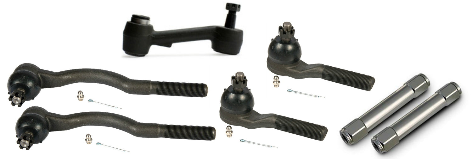 Containing Inner Tie Rod Ends, Outer Tie Rod Ends, Billet Tie Rod Adjusters, Idler arm and Center Link. These parts are built to OE sizes for a perfect fit and made to premium quality standards for great performance. Conveniently packaged with everything you need, all in one easy-to-install kit.