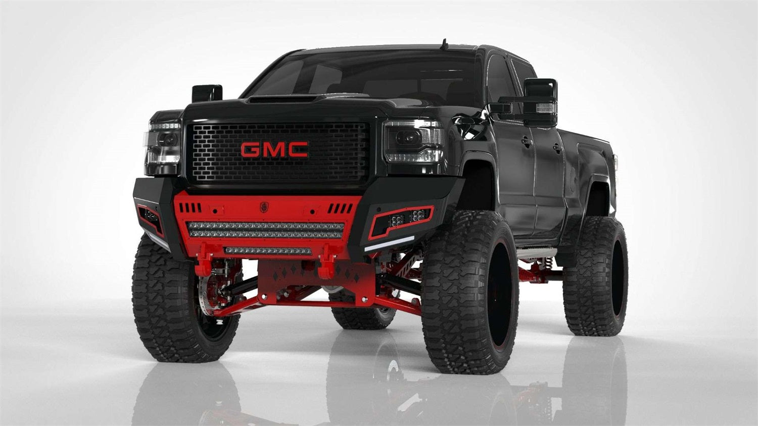 Road Armor 2152DF-A0-P2-MR-BH - 15-19 GMC 2500 iD FR Bumper Full Kit/Standard End Pods/X2 Cube/Acc Lights/Ring-Raw Steel