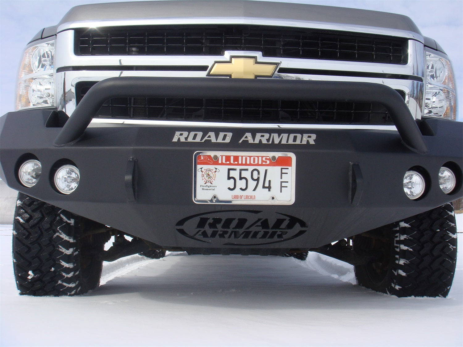 Road Armor is the world's premier bumper manufacturer, dedicated to producing the ultimate in form, fit, and finish. We were the first to create a multifaceted steel bumper design and have led the industry since 2000. There are a lot of other manufacturers on the market these days, and we encourage you to learn the difference — The Road Armor difference — because not all replacement bumpers are created equal. There's no substitute for the Original Road Armor Bumpers, 100% Made in Texas, USA and backed by our Lifetime Guarantee. Road Armor Stealth Full Replacement Winch Bumpers are rugged, and loaded with added utility. The Original Faceted Stealth Series Steel Bumper in our Standard Premium 5-stage Satin Black powder-coat finish was the pioneer of the aftermarket bumper segment. Specifically designed to follow, compliment, and accentuate the body lines of your vehicle, this masterpiece of metal houses a WARN M12000, Smittybilt XRC Winch or similar and has recessed light ports for (4x) 4- in. diameter : PIAA 510 or Quake LED QFR199 and (2x) Light Tabs on Pre-Runner Bar*.
