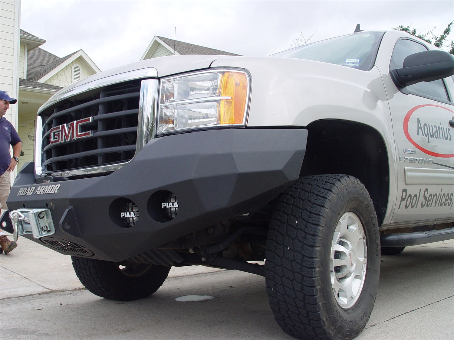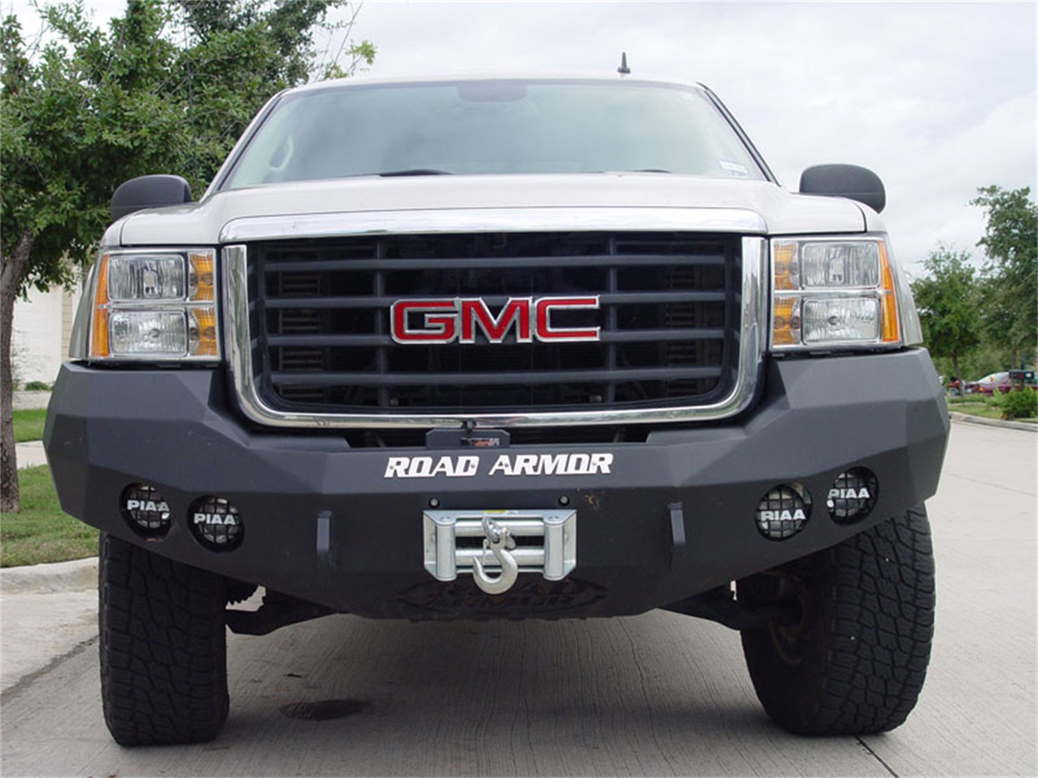 Road Armor is the world's premier bumper manufacturer, dedicated to producing the ultimate in form, fit, and finish. We were the first to create a multifaceted steel bumper design and have led the industry since 2000. There are a lot of other manufacturers on the market these days, and we encourage you to learn the difference — The Road Armor difference — because not all replacement bumpers are created equal. There's no substitute for the Original Road Armor Bumpers, 100% Made in Texas, USA and backed by our Lifetime Guarantee. Road Armor Stealth Full Replacement Winch Bumpers are rugged, and loaded with added utility. The Original Faceted Stealth Series Steel Bumper in our Standard Premium 5-stage Satin Black powder-coat finish was the pioneer of the aftermarket bumper segment. Specifically designed to follow, compliment, and accentuate the body lines of your vehicle, this masterpiece of metal houses a WARN M12000, Smittybilt XRC Winch or similar and has recessed light ports for (4x) 4- in. diameter : PIAA 510 or Quake LED QFR199*.