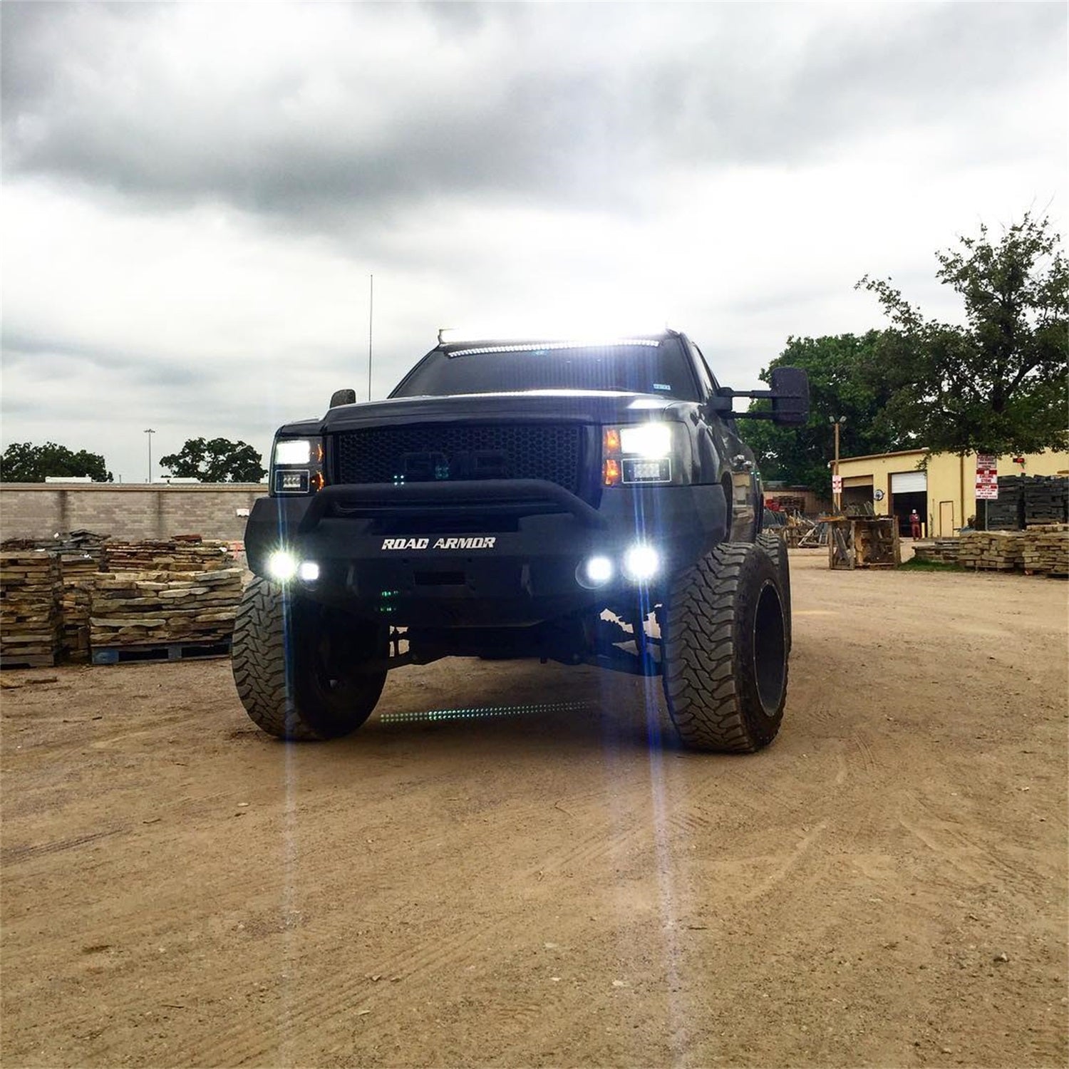 Road Armor is the world's premier bumper manufacturer, dedicated to producing the ultimate in form, fit, and finish. We were the first to create a multifaceted steel bumper design and have led the industry since 2000. There are a lot of other manufacturers on the market these days, and we encourage you to learn the difference — The Road Armor difference — because not all replacement bumpers are created equal. There's no substitute for the Original Road Armor Bumpers, 100% Made in Texas, USA and backed by our Lifetime Guarantee. Road Armor Stealth Full Replacement Winch Bumpers are rugged, and loaded with added utility. The Original Faceted Stealth Series Steel Bumper in our Standard Premium 5-stage Satin Black powder-coat finish was the pioneer of the aftermarket bumper segment. Specifically designed to follow, compliment, and accentuate the body lines of your vehicle, this masterpiece of metal houses a WARN M12000, Smittybilt XRC Winch or similar and has recessed light ports for (4x) 4- in. diameter : PIAA 510 or Quake LED QFR199 and (2x) Light Tabs on Pre-Runner Bar*.