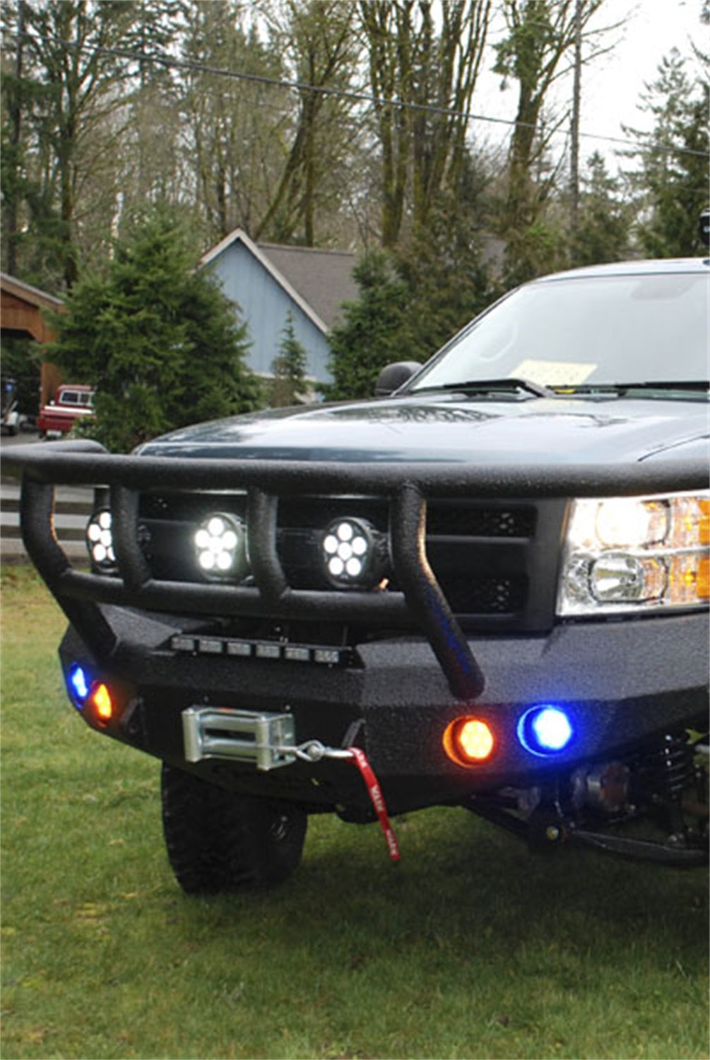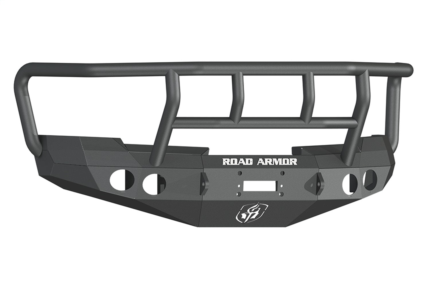 Road Armor is the world's premier bumper manufacturer, dedicated to producing the ultimate in form, fit, and finish. We were the first to create a multifaceted steel bumper design and have led the industry since 2000. There are a lot of other manufacturers on the market these days, and we encourage you to learn the difference — The Road Armor difference — because not all replacement bumpers are created equal. There's no substitute for the Original Road Armor Bumpers, 100% Made in Texas, USA and backed by our Lifetime Guarantee. Road Armor Stealth Full Replacement Winch Bumpers are rugged, and loaded with added utility. The Original Faceted Stealth Series Steel Bumper in our Standard Premium 5-stage Satin Black powder-coat finish was the pioneer of the aftermarket bumper segment. Specifically designed to follow, compliment, and accentuate the body lines of your vehicle, this masterpiece of metal houses a WARN M12000, Smittybilt XRC Winch or similar and has recessed light ports for (4x) 4- in. diameter : PIAA 510 or Quake LED QFR199 and (3x) Light Tabs on Titan II Guard*.