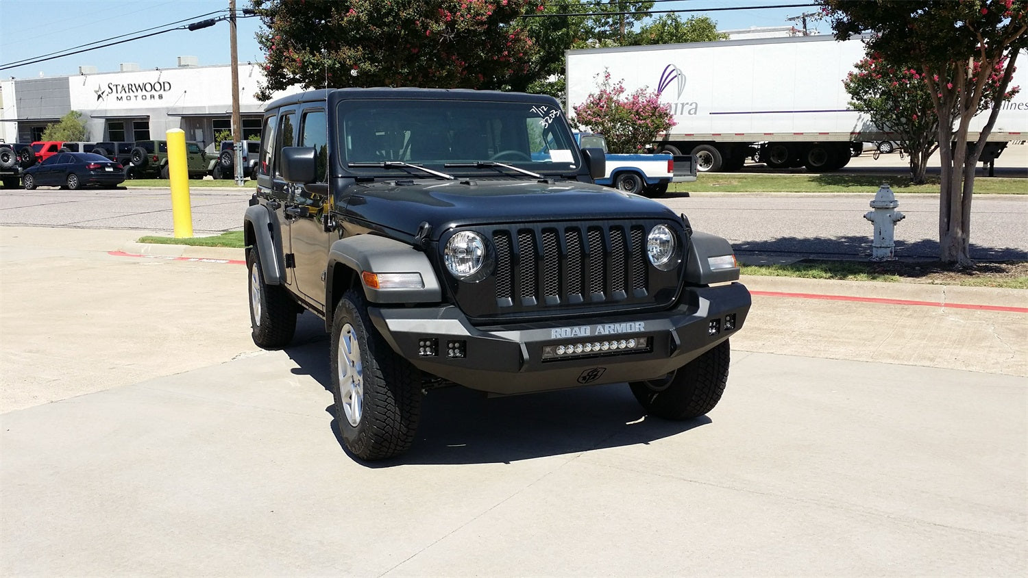 Road Armor 5184F3B - 18-20 Jeep Wrangler JL Sport Stealth Front Winch Bumper w/Bar Full Width - Tex Blk