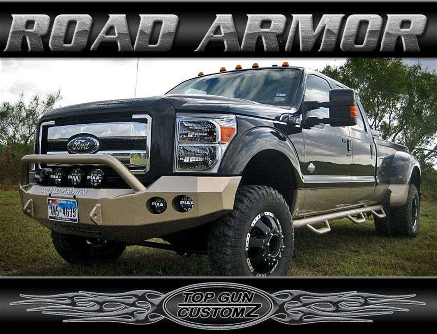 Road Armor is the world's premier bumper manufacturer, dedicated to producing the ultimate in form, fit, and finish. We were the first to create a multifaceted steel bumper design and have led the industry since 2000. There are a lot of other manufacturers on the market these days, and we encourage you to learn the difference — The Road Armor difference — because not all replacement bumpers are created equal. There's no substitute for the Original Road Armor Bumpers, 100% Made in Texas, USA and backed by our Lifetime Guarantee. Road Armor Stealth Full Replacement Winch Bumpers are rugged, and loaded with added utility. The Original Faceted Stealth Series Steel Bumper in our Standard Premium 5-stage Satin Black powder-coat finish was the pioneer of the aftermarket bumper segment. Specifically designed to follow, compliment, and accentuate the body lines of your vehicle, this masterpiece of metal houses a WARN 16.5ti Winch or similar and has recessed light ports for (4x) 4- in. diameter : PIAA 510 or Quake LED QFR199 and (2x) Light Tabs on Pre-Runner Bar*.