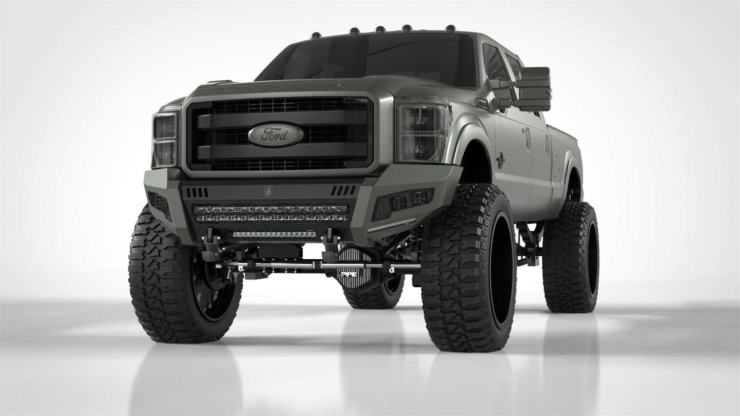 Road Armor 6112DF-B0-P2-MD-BH - 11-16 Ford F-250 iD FR Bumper Full Kit/Standard End Pod/X2 Cube/Acc Light/iD-Raw Steel