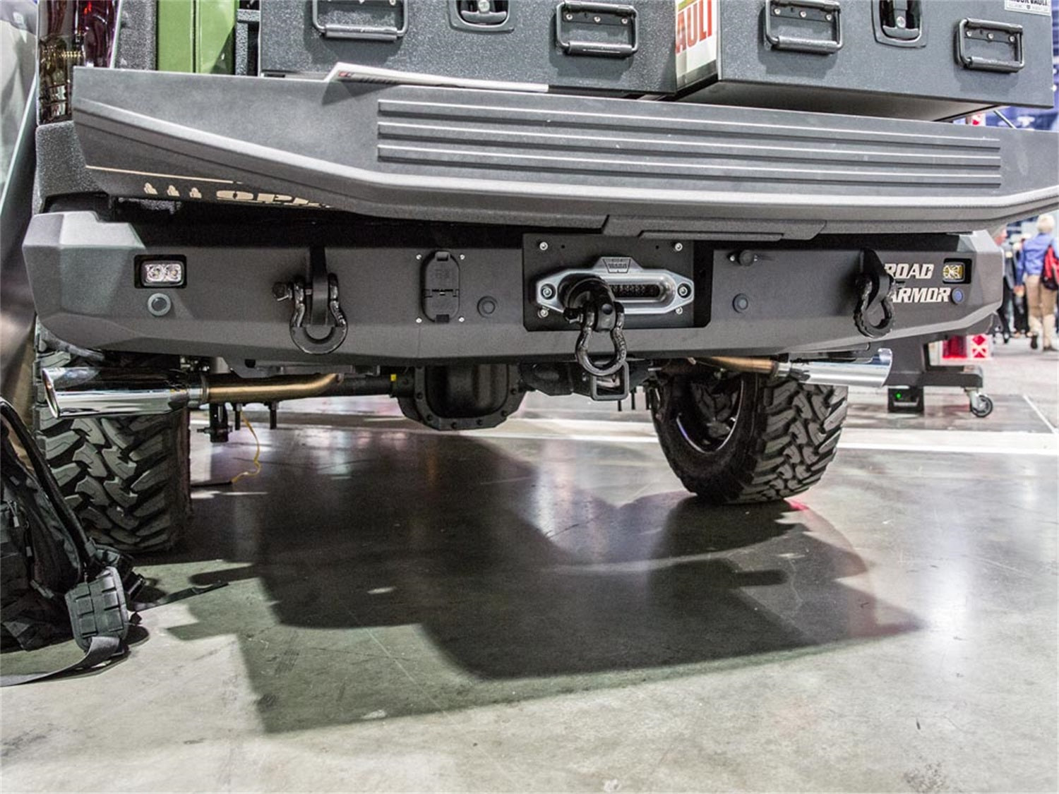 Road Armor is the world's premier bumper manufacturer, dedicated to producing the ultimate in form, fit, and finish. We were the first to create a multifaceted steel bumper design and have led the industry since 2000. There are a lot of other manufacturers on the market these days, and we encourage you to learn the difference — The Road Armor difference — because not all replacement bumpers are created equal. There's no substitute for the Original Road Armor Bumpers, 100% Made in Texas, USA and backed by our Lifetime Guarantee. Road Armor Stealth Full Replacement Winch Bumpers are rugged, and loaded with added utility. The Original Faceted Stealth Series Steel Bumper in our Standard Premium 5-stage Satin Black powder-coat finish was the pioneer of the aftermarket bumper segment. Specifically designed to follow, compliment, and accentuate the body lines of your vehicle, this masterpiece of metal houses a WARN M8000 or 9.5xp Winch or similar and has recessed light ports for (2x) Rigid SRM Backup Lights or QuakeLED QQU451*.