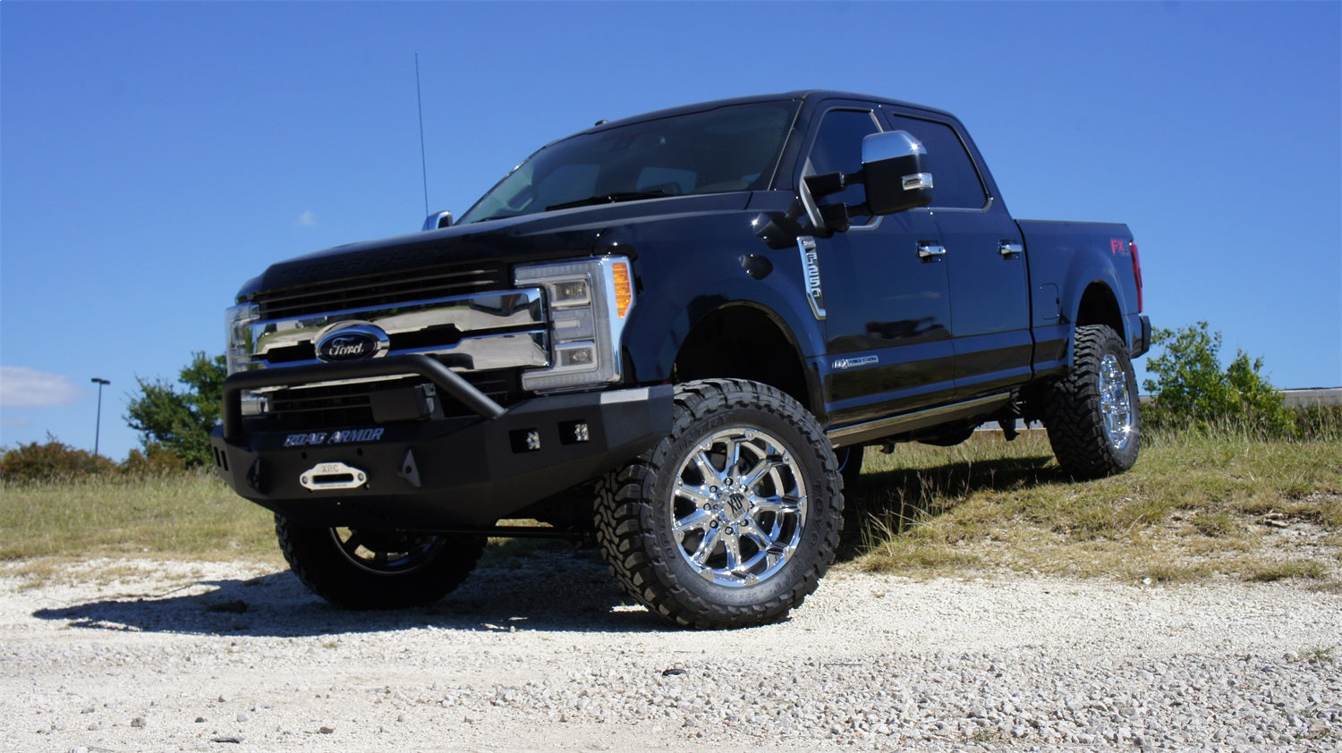 Road Armor is the world's premier bumper manufacturer, dedicated to producing the ultimate in form, fit, and finish. We were the first to create a multifaceted steel bumper design and have led the industry since 2000. There are a lot of other manufacturers on the market these days, and we encourage you to learn the difference — The Road Armor difference — because not all replacement bumpers are created equal. There's no substitute for the Original Road Armor Bumpers, 100% Made in Texas, USA and backed by our Lifetime Guarantee. Road Armor Stealth Full Replacement Winch Bumpers are rugged, and loaded with added utility. The Original Faceted Stealth Series Steel Bumper in our Standard Premium 5-stage Satin Black powder-coat finish was the pioneer of the aftermarket bumper segment. Specifically designed to follow, compliment, and accentuate the body lines of your vehicle, this masterpiece of metal houses a WARN 16.5ti Winch or similar and has recessed light ports for (4x) Rigid Dually/D2 or Quake LED QSE550 and (2x) Light Tabs on Pre-Runner Bar*.