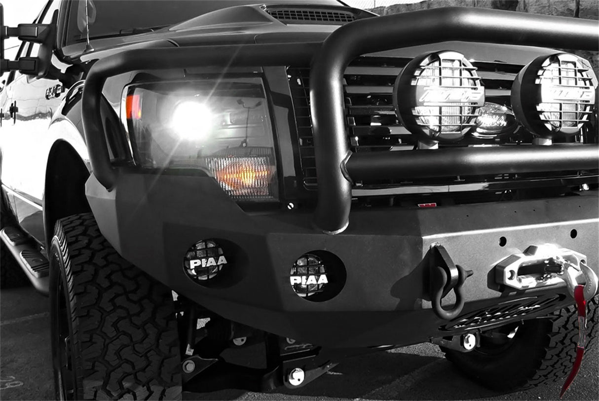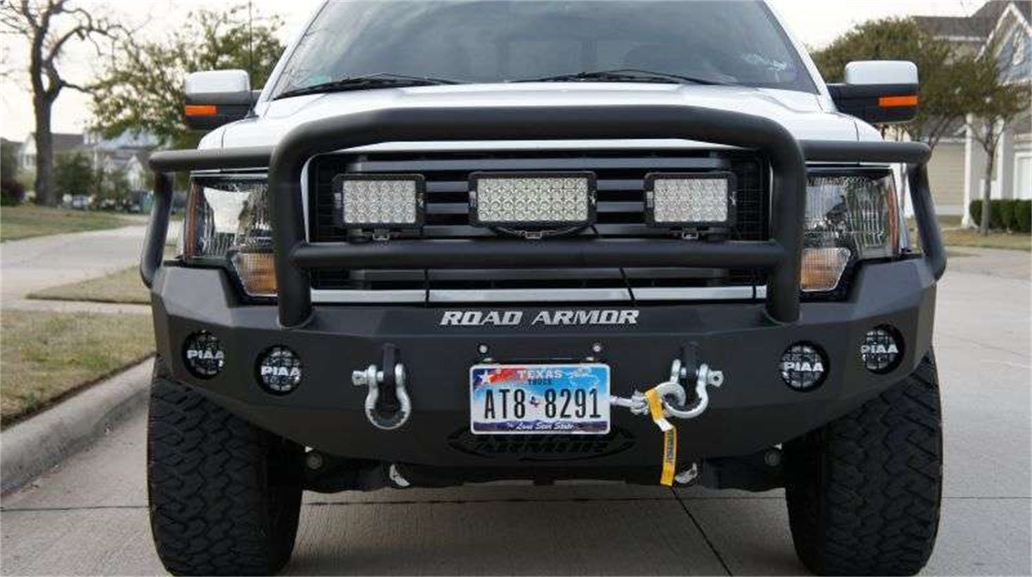 Road Armor is the world's premier bumper manufacturer, dedicated to producing the ultimate in form, fit, and finish. We were the first to create a multifaceted steel bumper design and have led the industry since 2000. There are a lot of other manufacturers on the market these days, and we encourage you to learn the difference — The Road Armor difference — because not all replacement bumpers are created equal. There's no substitute for the Original Road Armor Bumpers, 100% Made in Texas, USA and backed by our Lifetime Guarantee. Road Armor Stealth Full Replacement Winch Bumpers are rugged, and loaded with added utility. The Original Faceted Stealth Series Steel Bumper in our Standard Premium 5-stage Satin Black powder-coat finish was the pioneer of the aftermarket bumper segment. Specifically designed to follow, compliment, and accentuate the body lines of your vehicle, this masterpiece of metal houses a WARN M12000, Smittybilt XRC Winch or similar and has recessed light ports for (4x) 4- in. diameter : PIAA 510 or Quake LED QFR199 and (3x) Light Tabs on Lonestar Guard*.