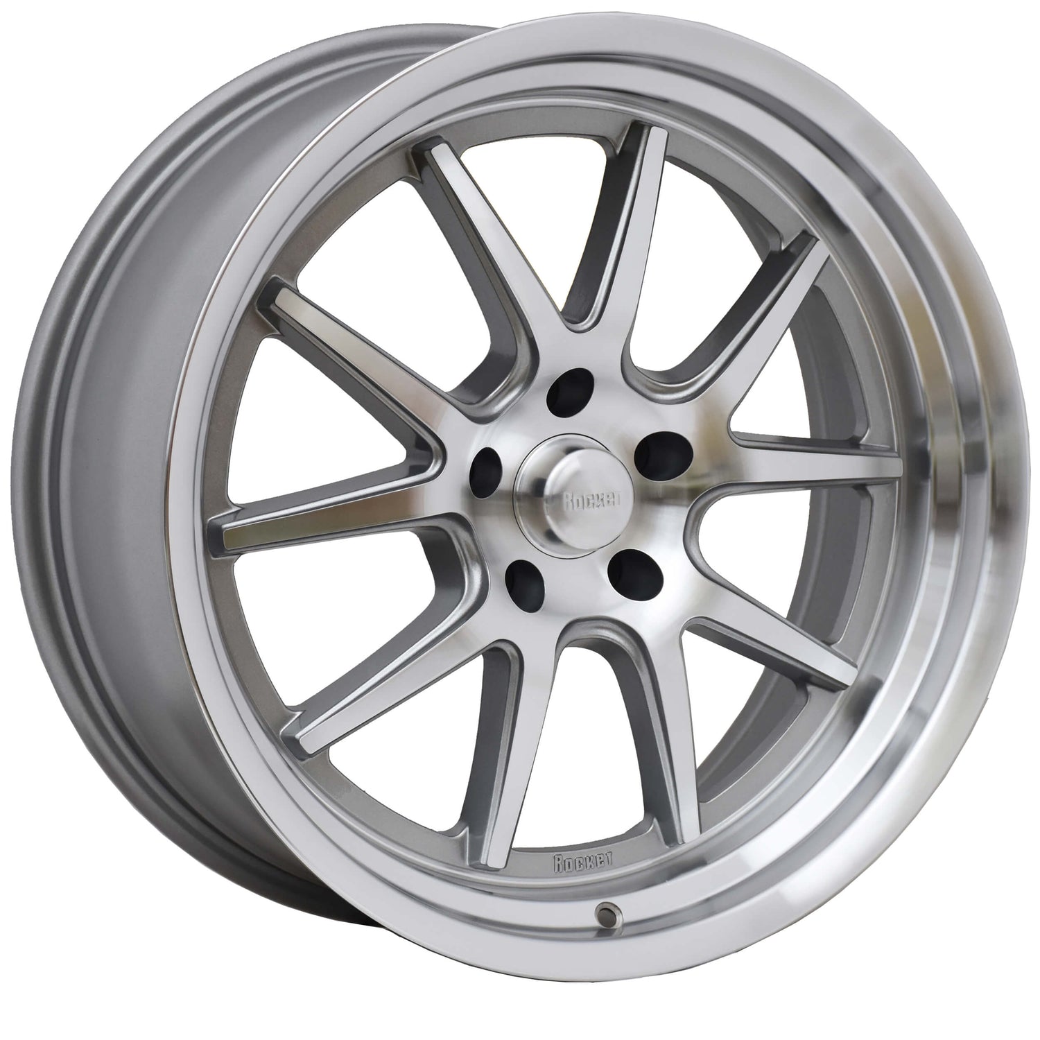 Rocket Attack Wheels are Strong, Lightweight Performance Wheels at a fraction of the cost of VERY Expensive Forged Wheels! Dual-direction production method offers near infinite flexibility because the cast center can be moved within a wide range of offsets inside the spun forged outer, providing options that until now were available only from expensive multi-piece wheels. This breakthrough technology delivers weight and metal strength characteristics similar to traditional high-dollar forged wheels. Features machined face and rim with titanium color accents and premium clear coating for low maintenance and show quality appearance. 1-piece design eliminates unwanted leaky bolts and maintenance of 3-piece wheels. Generous caliper clearance for performance braking systems. Includes 1.00 inch tall machined dome center cap with Rocket logo.