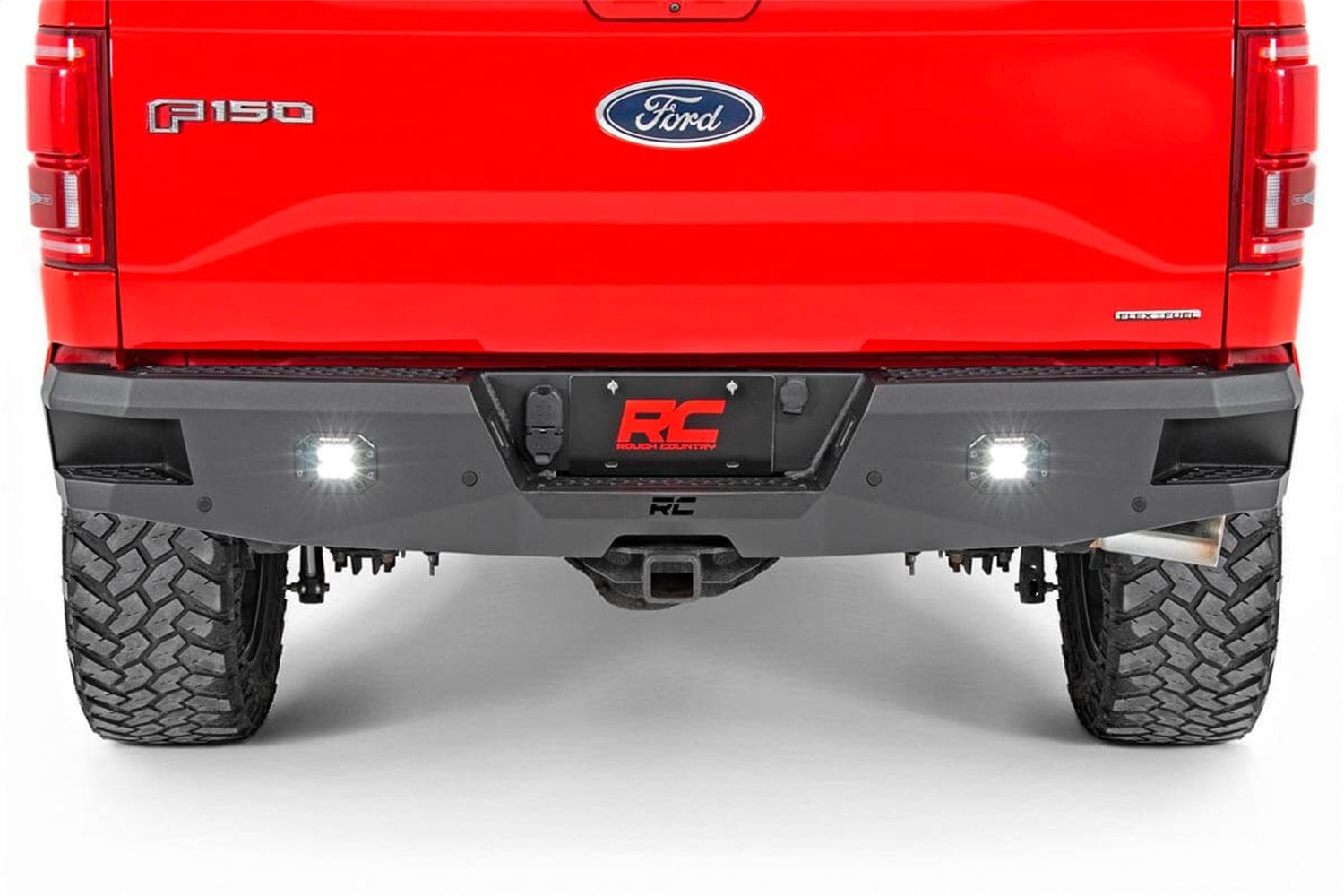 Give the rear of your F-150 an aggressive, new appearance with Rough Country's Rear LED Bumper. This easy-to-install upgrade gives your truck an improved look and better functionality, with two pre-installed Rough Country LED cubes that offer impressive off-road illumination! Rough Country's Rear LED Bumper is made of a durable, all-steel construction that's ready to handle whatever you dish out. Each bumper features two Rough Country Black-Series 2in LED Flush Mount Cubes for rear illumination, and two integrated steps for easy access to the bed. Each bumper also includes sensor relocators to allow you to retain the vehicle's anti-collision system. Unlike some aftermarket bumpers for this model, Rough Country's LED Rear Bumper allows you to retain the factory receiver hitch for towing. Rough Country's Rear LED Bumper is easy to install with common tools in a home garage! Best of all each bumper includes a 3-year warranty!