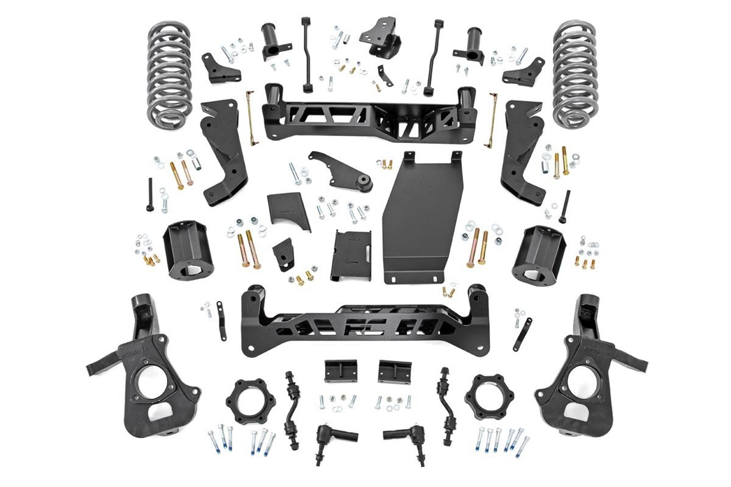 Suspension Lift Kit; 6 in. Lift; Incl. Knuckles; Crossmember; Strut Spacer; Diff. Drop Brkt.; Swaybar Link; skit Plate; Coil Springs; Trackbar Brkt.; Shock Extensions; Hardware;