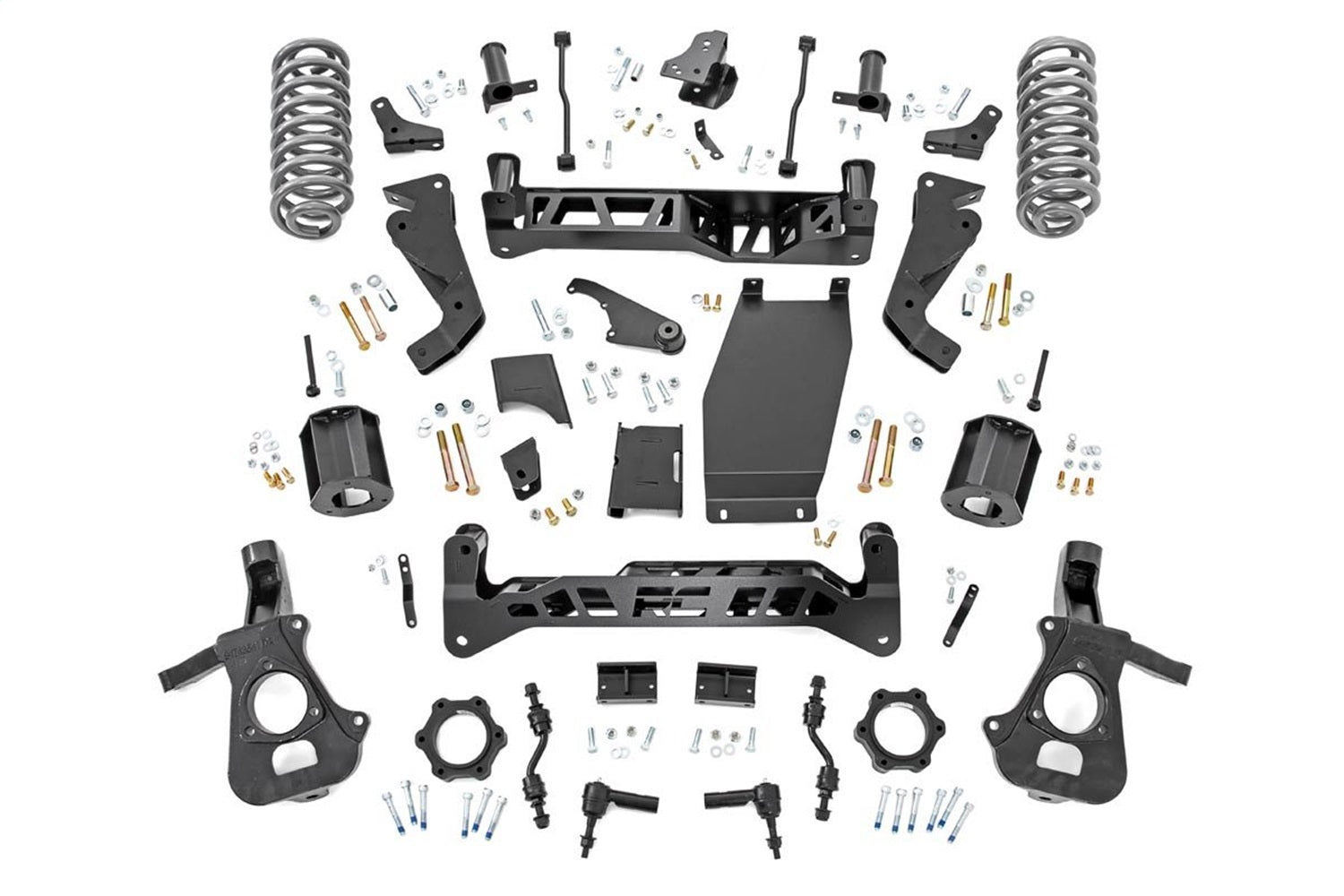 Get the look you really want with Rough Countrys 6- in. Suspension Kits for the Chevrolet Tahoe and GMC Yukon. These premium kits provide clearance for a 305/55R20 tire while reducing the factory rake for a leveled stance and is packed with impressive features including; High clearance cross members and brackets precision laser cut for a perfect fit, a set of beefy lifted knuckles designed for optimum geometry and lifted rear coil springs that are perfectly dialed in for driving stability. Includes Rough Countrys Lifetime Replacement Warranty.