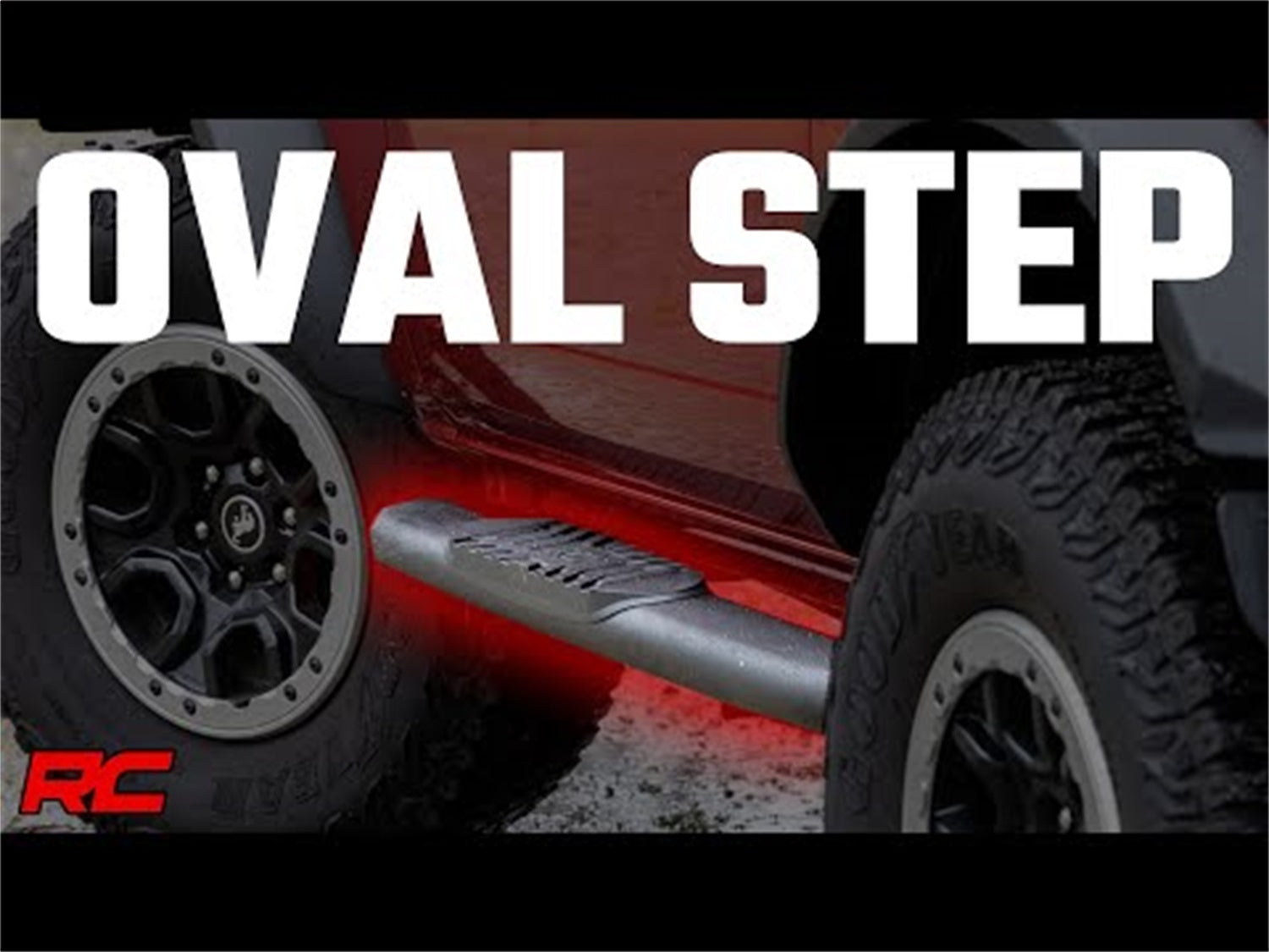 Step up your game. Give your Bronco the perfect finishing touch with Rough Country's Oval Nerf Step Bars. They feature non-slip foot pads for secure footing with a classic OEM design that looks great on any Bronco, including lifted models. These step bars are designed for both form and function with a curved and stylish look. Stability and Style. Our Oval Nerf Steps have been designed with your safety in mind. The 30-degree angled end steps provide convenient access with an extra-wide 5-inch stepping area. In addition, they are built into a high-quality tubular nerf rail, providing tons of support and stability. Sealed to protect against corrosion, these rugged and stylish Oval Nerf Side Steps are black powder-coated for long-lasting life. Installation. With no cutting or drilling required to install, installation couldn't be easier. With an estimated 1-2 hours timeframe, this kit can be installed at home using standard tools. Warranty. Rough Country's Oval Nerf Step Bars are backed with a five-year replacement warranty towards manufacturer defects. As such, the product is protected from structural and workmanship damage after the date of purchase. With our industry-leading warranty, give yourself peace of mind when using Rough Country's products!