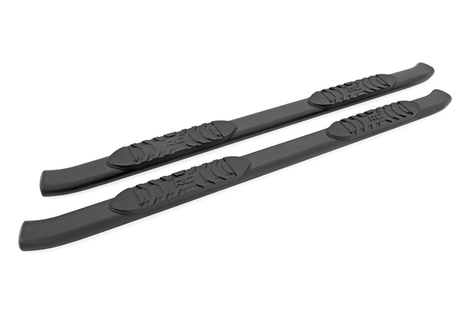 Step up your game. Give your Toyota Tacoma the perfect finishing touch with Rough Country's Oval Nerf Step Bars. They feature non-slip foot pads for secure footing with a classic OEM design that looks great on any Tacoma, including lifted models. These truck bed bars are designed for both form and function with a curved and stylish look. Stability and Style. Our Toyota Tacoma Oval Nerf Steps have been designed with your safety in mind. The 30-degree angled end steps provide convenient access with an extra-wide 4.5-inch stepping area. In addition, they are built into a high-quality tubular nerf rail, providing tons of support and stability. Sealed to protect against corrosion, these rugged and stylish Oval Nerf Side Steps are black powder-coated for long-lasting life. Installation. With no cutting or drilling required to install, installation couldn't be easier. With an estimated 1-2 hours timeframe, this kit can be installed at home using standard tools. Warranty. Rough Country's Oval Nerf Step Bars are backed with a five-year replacement warranty towards manufacturer defects. As such, the product is protected from structural and workmanship damage after the date of purchase. With our industry-leading warranty, give yourself peace of mind when using Rough Country's products!