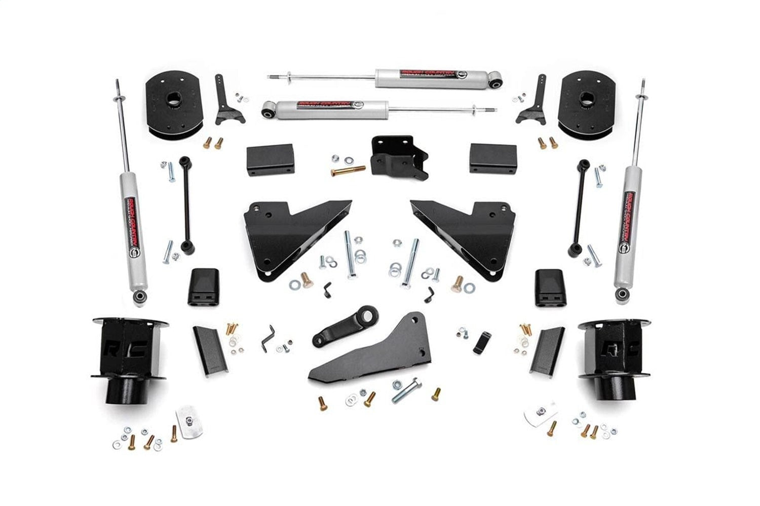 Compliment your RAM 2500's aggressive, good looks with Rough Country's 5-inch Lift Kit. New model RAM Trucks come with a wealth of impressive features right from the factory. Rough Country's 5-inch kit was engineered to retain these impressive factory specs while bumping up performance and durability where it's needed most. The result is a lifted beast with a mean profile and lush ride-quality that'll make other RAM owners wonder where you got yours from! Rough Country's 5-inch Lift Kit is designed for Dodge RAM's equipped with either factory rear coils or factory rear air ride suspension. On Air Ride models, this kit uses a rear air bag spacer that works with the factory air bag to provide rear lift. This kit also features a Rear Sensor Arm Relocation Bracket that can modify how the sensor link speaks to the computer to determine what the ride height is. This allows you to adjust the amount of rear height up to 1-inch higher than the front by way of multiple mounting points spaced by 1/4-inch. Pick the mounting point you want for the rear ride height you prefer. When changing a vehicle's suspension, the key to preserving ride quality is in keeping the geometry of all suspension components as close to their factory angles as possible. Rough Country's 5-inch Suspension kit features a set of Radius Arm Drop brackets allowing you to retain the beefy factory arms while keeping everything at optimum angles. In a further effort to preserve the truck's factory ride, this kit retains the factory progressive rate coil spring -- designed by Dodge specifically for the weight and ride quality of these new model trucks. This kit also features a set of N3 Shocks for a fantastic blend of smooth highway ride and awesome off-road performance.