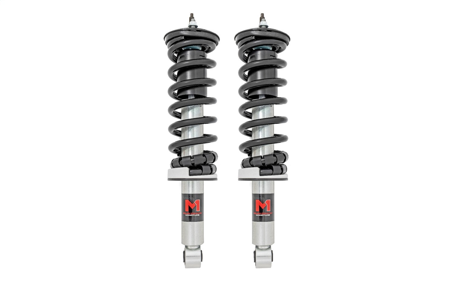 Improved Stance, Balance, and Handling. If you want to improve your vehicles on-road performance and off-road capabilities, Rough Countrys M1 Strut Leveling Kits are the way to go. Our M1 Leveling Struts help stabilize your vehicles movements, enhancing control when you turn, brake, accelerate or ride over uneven road surfaces. As an adjustable ride height strut, these M1s keep your suspension from overextending, providing a more consistent ride. Made for rugged off-road performance, our M1 monotube struts have a 46mm digressive piston for a more stable ride, preserving the smooth ride quality you need. Quality Construction. Rough Countrys M1 Monotube Leveling Struts have been engineered to give you the most reliable performance, increased driving comfort, and all-around performance for your vehicle. Made from 2 in. seamless extruded tubing and feature durable vulcanized natural rubber bushings. They're also zinc plated for resistance against the elements. Plus, they're adjustable in height. Utilizing multiple grooves in the strut body the spring perch can be raised or lowered to achieve two inches of lift down to a stock height replacement. So whether youre looking to add a little extra clearance for off-roading or just want your ride to sit a little higher, our M1 Monotube Leveling Struts are the perfect solution. Installation and Warranty. This bolt-on installation requires just basic tools and about 2-3 hours to complete. Our Strut Kit is backed with a limited lifetime replacement warranty towards manufacturer defects. As such, the product is protected from structural and workmanship damage after the date of purchase. With our industry-leading warranty, give yourself peace of mind when using Rough Countrys products!