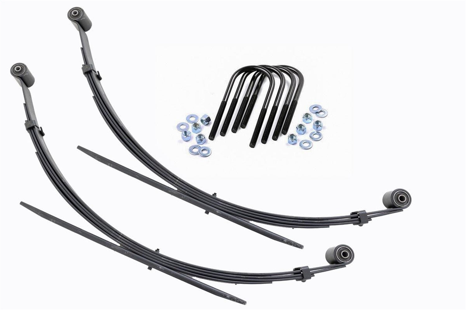 Added Lift Height and Ride Comfort. Take your suspension kit to the next level with Rough Country's Replacement Leaf Springs. Constructed from high-quality materials and designed specifically for the weight of your vehicle. This enhanced replacement spring will provide a factory-like feel while retaining your suspension lift height. Durable and Off-Road Ready. Rough Country's Replacement Leaf Springs are designed to tackle any terrain that they are faced with. Featuring a multi-leaf design and spring pads this reduces the friction and maximizes comfort. Each leaf pack utilizes tapered leaves for improved flexibility at their ends. Installation. Rough Country's Replacement Leaf Springs offer a 100% bolt-on installation estimated to take approximately 1-2 hours depending on vehicle condition. Simply remove the pre-existing leaf spring and use the stock hardware to equip your vehicle with this high-quality replacement. Lifetime Replacement Warranty. Rough Country's Replacement Leaf is backed with a 5-year replacement warranty towards manufacturer defects. As such, the product is protected from structural and workmanship damage after the date of purchase. With our industry-leading warranty give yourself peace of mind when using Rough Country's Suspension products!