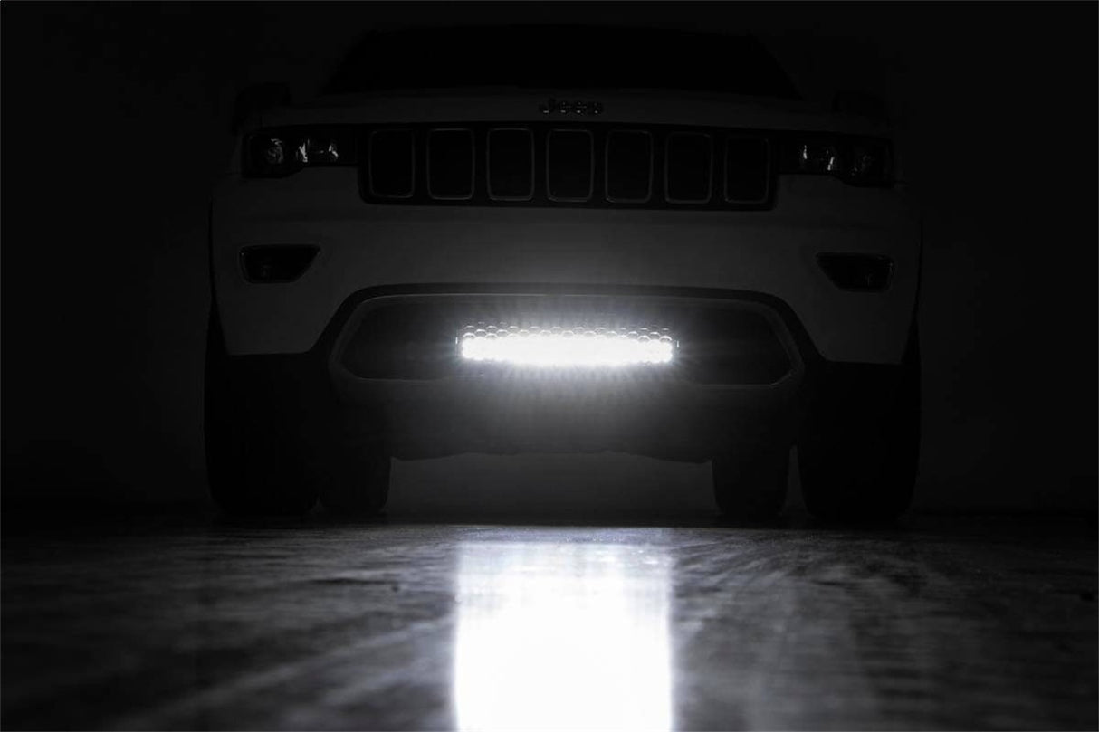Add LED lighting to your Grand Cherokee quickly and easily with Rough Country's 20in Hidden Bumper LED Kit! This easy-to-install solution lets you mount a 20in Rough Country Dual-Row LED Light Bar just behind the mesh opening in the front bumper. COMMAND THE DARK with this convenient, forward-facing lighting product that makes it easy to see the trail ahead, with powerful LED illumination provided by Rough Country's 20in Dual Row LED Light Bar. Each kit includes your choice of Rough Country's Chrome-Series or Black-Series Light Bars with optional DRL capabilities for the exact look you desire. Best of all, this kit is easy to install - with no cutting or drilling required - making it easy to upgrade the front-end of your WK2 Grand Cherokee with this impressive lighting system. Includes a 3-year warranty!