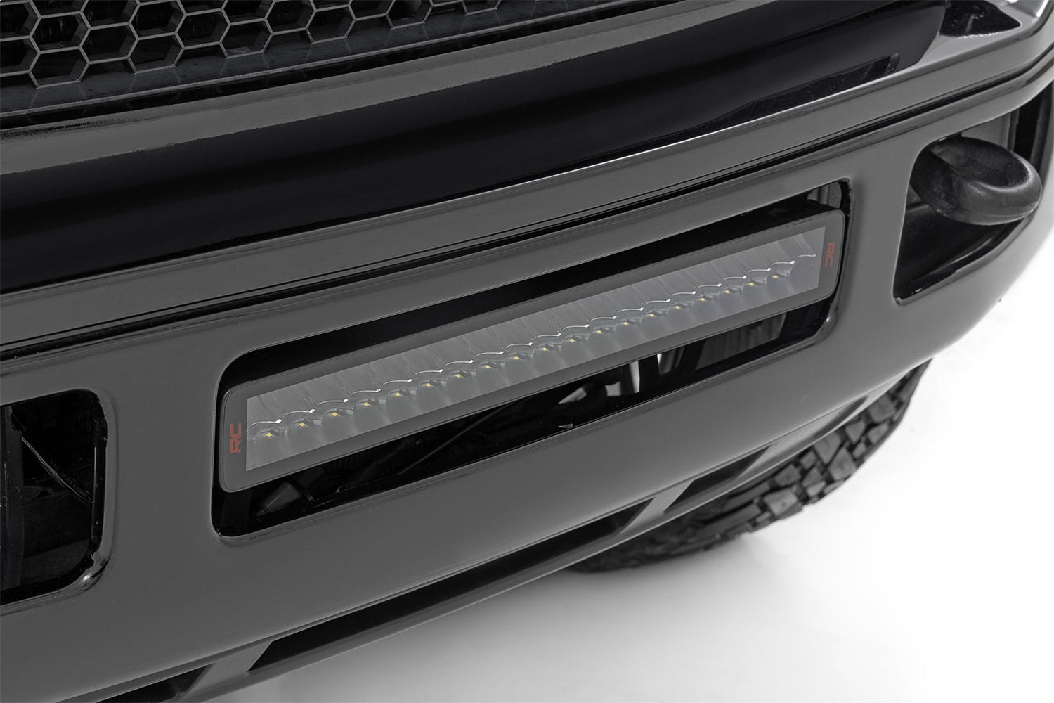 Light up the night. Get ready to see the night like never before with Rough Country's Spectrum 20-inch Dual Row Light Bar! Boasting an ultra-sleek bezel-less design, it packs 200 watts of raw power and a whopping 18000 lumens! With both spot and flood beam pattern options, you'll get the perfect combination of distance projection and wide-beam coverage. The 20-inch Spectrum will light your way through the darkest trails on your next Overlanding, rock crawling, four-wheeling, or trail riding adventure. Dependable durability. This high-intensity LED light bar features an IP67/IP69K waterproof rating with an impact and UV-resistant lens. Each light contains 40 -5W Osram LEDs and a tinted diffused lens to provide high-performance output with minimal glare while giving you optimal visibility off-road. Our Diecast aluminum housing makes this light bar incredibly durable, so you can depend on them to command the dark for years to come. Installation and Warranty. Rough Country's Spectrum 20-inch Dual Row Light Bar is designed for easy installation, allowing you to get back on the road in no time. It comes with snap-on covers, base mounts, end mounts with hardware, wiring harness, and an on/off switch so you can have it on your rig in no time. Plus, it includes a three-year warranty, so we've got your back when you hit those rough roads out there!