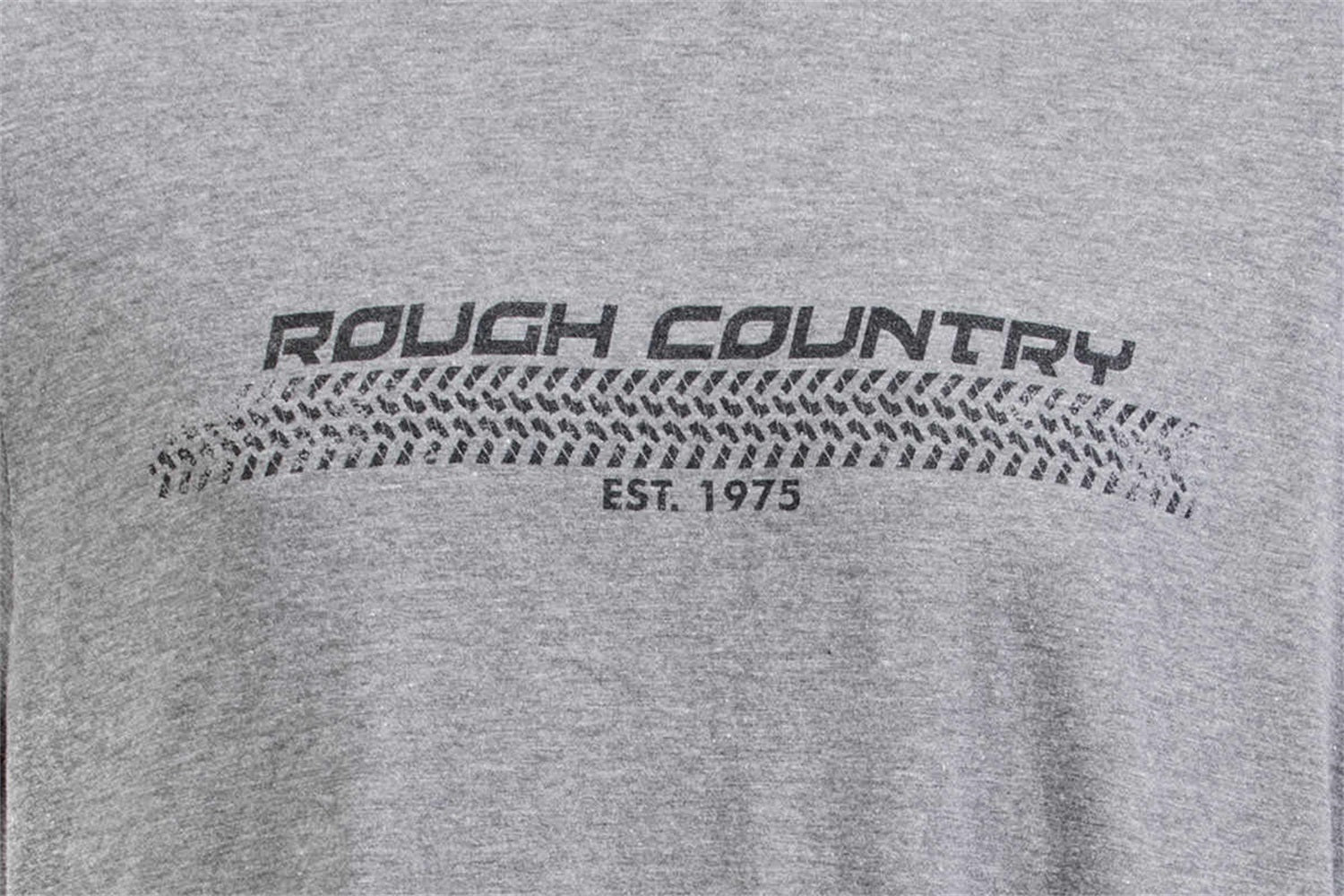 Wear your Rough Country pride like a badge of honor with Rough Country's Horizontal Tread T-shirt. This comfortable shirt features a Rough Country logo, off-road tread pattern, and â??Est. 1975â? date printed across the front.This t-shirt features a stylish and comfortable heather fabric style for exceptional good looks and a long lifespan. This tri-blend tee includes a tagless design for a more comfortable feel.