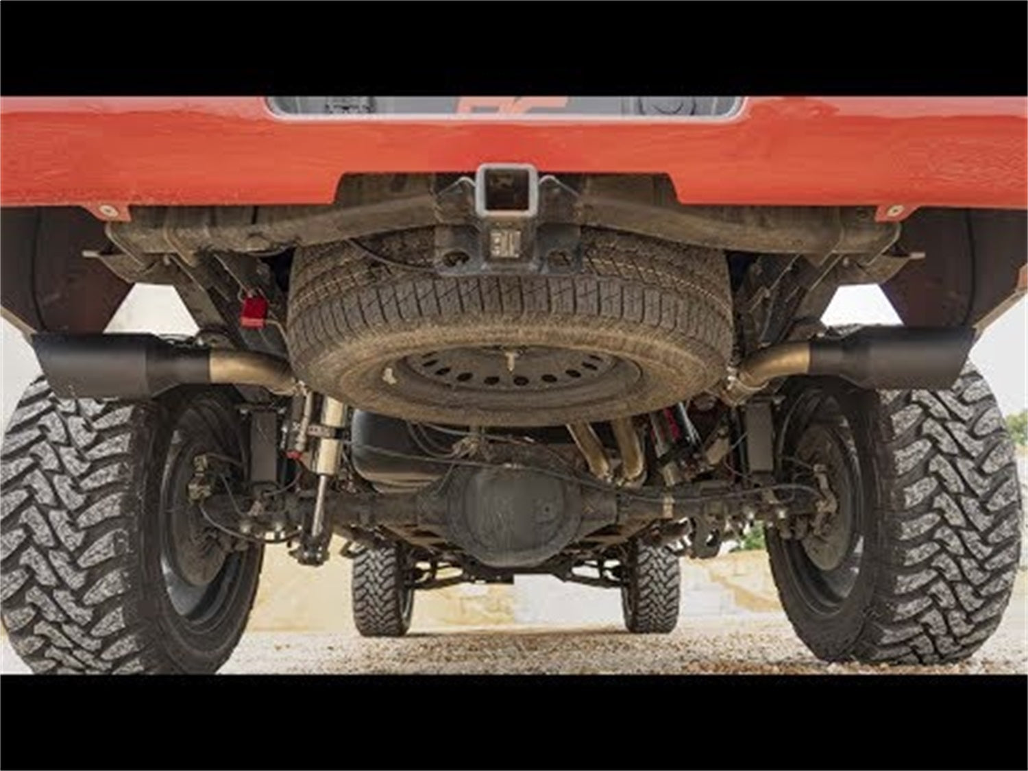 Give your truck an aggressive, throaty growl and killer good looks with Rough Countrys Dual Cat-Back Exhaust System for Chevy / GMC Pickups. These durable exhaust systems are fine tuned to improve air flow and deliver and the perfect aftermarket exhaust note that will put a smile on your face every time you hit the gas. Rough Country Dual Cat-Back Exhaust Systems feature a set of high-temp resistant, dual-wall 304 black stainless tips with RC logo for an improved, aggressive look. Upgrading your exhaust note has never been easier! Each kit conveniently installs onto the factory hangers and features stainless clamps for easy assembly with no welding required! Transform your truck today and let your engine ROAR with the best exhaust kit money can buy!