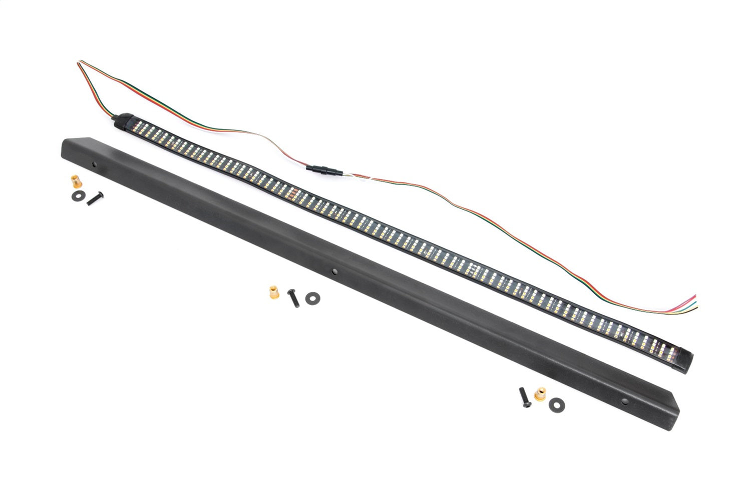 Take your Can-Am's functionality to new levels with Rough Country's Quad-Row Multifunction LED Tailgate Light Strip. This LED Light Strip has multiple modes, with a series of red and white LED's all tied into the same strip. This tailgate upgrade offers bright and dim red light options, white reverse lights, and half-panel red turn signals. With 288 LED's, this flexible strip adds increased driving capabilities in the dark. Whether you find yourself on the trails off-roading at night or getting the work done first thing before the sun comes up, Rough Country's Can-Am Defender Multi-Function LED Tailgate Light Strip has you covered. These Multifunction LED Tailgate Light Strips are easy to install and wire in to your UTV's factory wiring harness for immediate use. The LED strip itself adheres with a strip of pre-installed 3M automotive-grade adhesive padding that goes on fast and stays put. These handy tailgate LED Lights attached to the included L-bracket that installs under the tailgate of your Defender. Each Multi-Function Tailgate LED strip features an IP68 Waterproof design, guaranteed to resist dust and even prolonged water immersion. Includes Rough Country's 3-year limited Warranty.