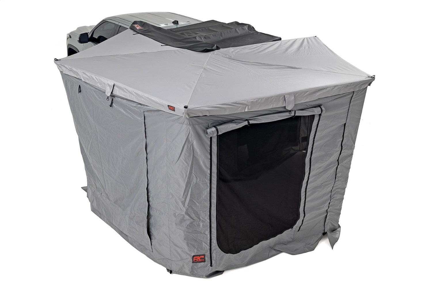 If youre an outdoor enthusiast, you know that having enough space and privacy is essential for a comfortable and enjoyable trip. Rough Countrys 270-degree Awning Wall Enclosure Kit is designed to seamlessly complement your 270-degree Awning, providing extra room, privacy, and protection, all while ensuring easy access to your vehicle. Enhanced Shelter and Privacy: This kit provides privacy and comfort for outdoor adventures. Use it as a changing room, a sleeping area, or a place to relax and escape the elements. Easy Integration: Attaching the Wall Enclosure is a breeze. It attaches to our 270-degree Awning, ensuring a secure and snug fit. Roll-Up Privacy Windows: Experience the perfect balance between openness and privacy with four roll-up windows featuring mosquito screens. Enjoy the fresh air while keeping insects at bay, or roll them down for a private retreat. Telescopic Aluminum Poles: The included set of three telescopic aluminum poles provides structural stability, ensuring your shelter remains sturdy and reliable even in unpredictable outdoor environments. Secure Tie Down Straps and Tent Stakes: We understand the importance of anchoring your shelter securely. Thats why we've included tie-down straps and tent stakes to keep your enclosure firmly in place, so you can enjoy your activities worry-free. Convenient Storage: When your adventure ends, the 270- Degree Awning Wall Enclosure Kit is designed for easy pack-up and storage. It neatly stows away in a durable, UV-coated bag, protecting your kit until your next adventure. Order the Rough Countrys 270-degree Awning Wall Enclosure Kit today and get the privacy you need and the comfort you deserve.