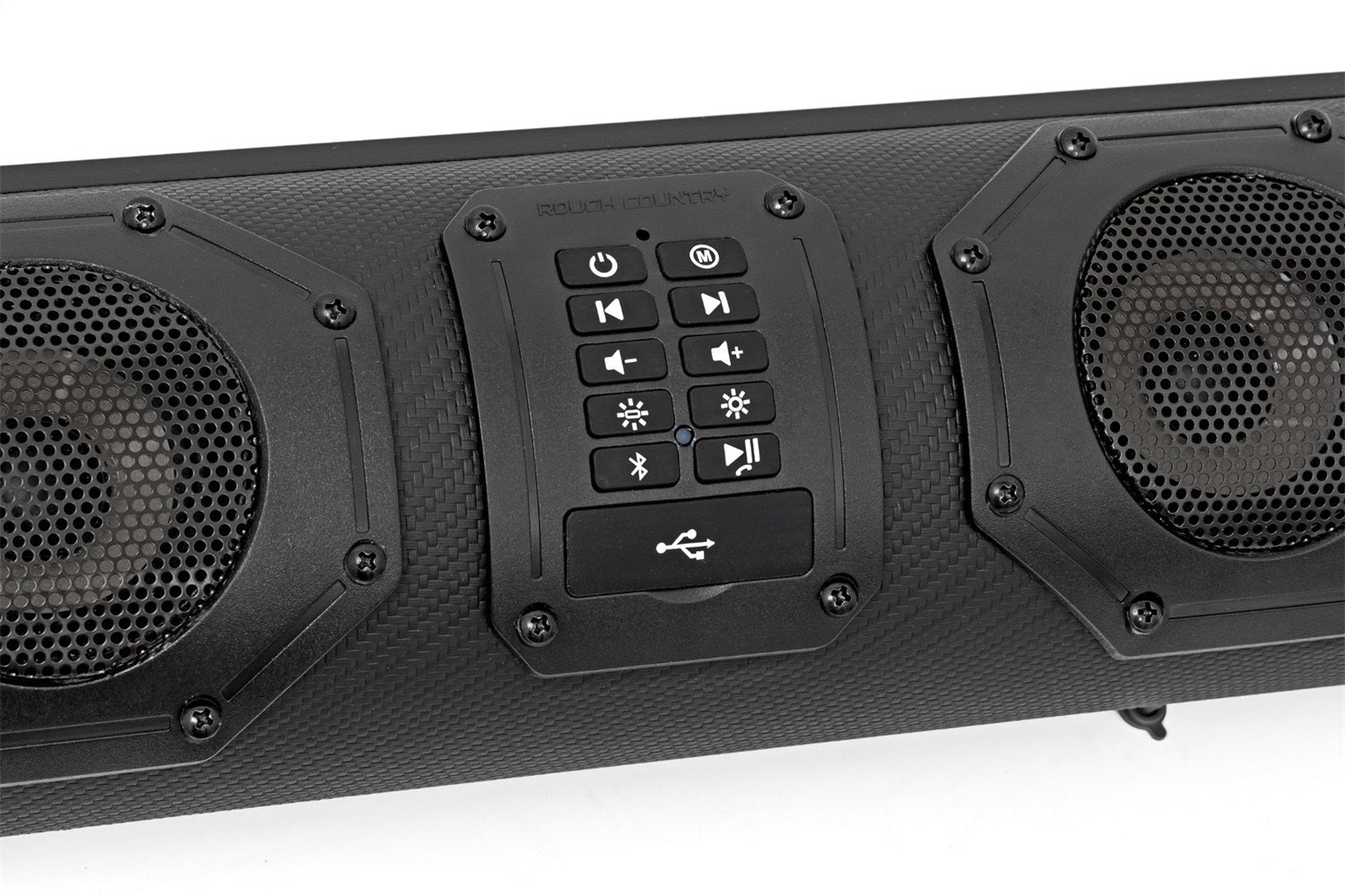 Ready to take your off-road adventures up a notch with epic sound and lighting? Rough Country's RESON8 Bluetooth LED Soundbar is your perfect trail companion, designed to bring the party wherever you go. With powerful audio, versatile connection options, and rugged durability, this soundbar is built to keep up with your wildest rides. Marine-Grade Powerhouse: Eight rugged speakers with 500 watts of peak power output deliver crystal-clear sound, that'll have you feeling every beat. Play It Your Way: stream your tunes with Bluetooth 5.0, switch to FM radio, plug in with the aux input, or pop in a USB drive the RESON8 lets you play it your way. Bluetooth 5.0: Enjoy a long-range, rock-solid wireless connection, letting you roam freely while keeping the music going. Dynamic LED Lighting: Customize your rides vibe with multiple color options and lighting functions on the rear light bar and speakers. Hands-Free Hero: Need to take a call? No problem. The built-in mic and controls let you chat without missing a beat. Built to Endure: Rain, mud, or dust? No problem. The IP66 waterproof rating ensures rugged durability, while top rail mounts and L-brackets provide multiple ways to mount it wherever you want. Peace of Mind: We're so confident in the RESON8 that we're backing it with a 1-year warranty. The RESON8 Bluetooth LED Soundbar is ready to rock your next off-road adventure, rain or shine. Turn it up, light it up, and take your ride to the next level!