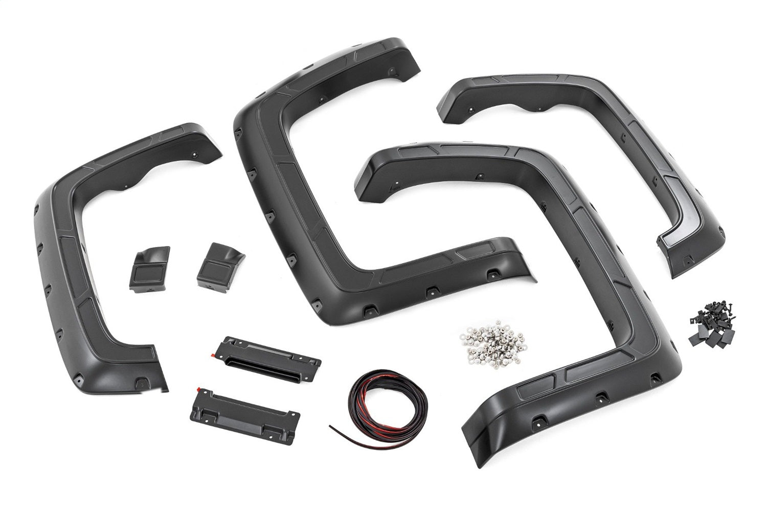 Innovative Design. It's time to stand out from the crowd and rise above your peers. Increase your truck's tire coverage with Rough Country's Defender Flares for the Chevy Silverado 1500/2500HD/3500HD. These aggressively good-looking flares transform your Chevy's exterior boasting 2-inches of tire coverage. These uniquely designed flares are sure to protect your Chevy's body from mud or road debris kicked up by the tires. Durable Construction. With everyday truck drivers in mind, Rough Country designed a Fender Flare that recognizes your expectations for tough tactical design, and your right to demand products with high reliability and outstanding quality. Don't settle for anything less! Rough Country's Defender Flares are designed to handle on or off-road terrain. Rough Country's fender flares are constructed of a smooth ABS UV-protected Korad? plastic. This material is lightweight and can endure the elements. The UV treatment process eliminates chalking and helps prevent sun fading. Limited Lifetime Replacement Warranty. Rough Country's Defender Flares are backed with a limited lifetime replacement warranty towards manufacturer defects. As such, the product is protected from structural and workmanship damage after the date of purchase. With our industry-leading warranty give yourself peace of mind when using Rough Country products!