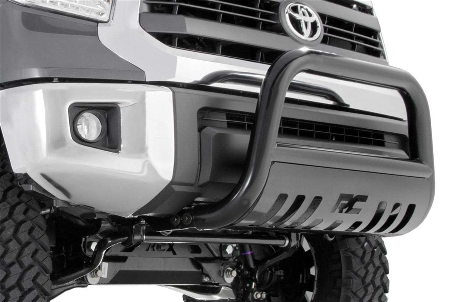 It's the ultimate combination of form and function with Rough Country's durable, new Bull Bars. Protect the front end of your truck with our beefy yet stylish Bull Bar kit. Featuring a 3-inch diameter tube design and corrosion-resistant finish, this Bull Bar package offers superior protection from hazards of the road and trail. Choose black or stainless and compliment the look of your vehicle with this eye-catching add-on. Features pre-drilled holes to easily add additional lighting. Rough Country's Bull Bars are easy to install, with a 100% bolt-on installation process that's easy enough to be done in a home garage with common tools. Each set of Rough Country Bull Bars is backed by Rough Country's 5-Year Warranty.