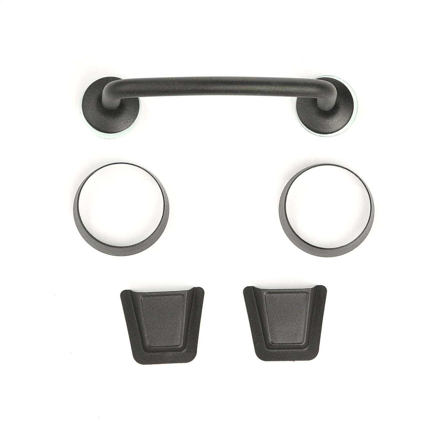 Want to personalize the look of your Jeep? This windshield tie down kit from Rugged Ridge is easily installed and comes in a durable black powder coated finish that adds a sporty style to your Wrangler. This kit includes a footman's loop, two windshield bumper trim rings, and two windshield washer jet covers.
