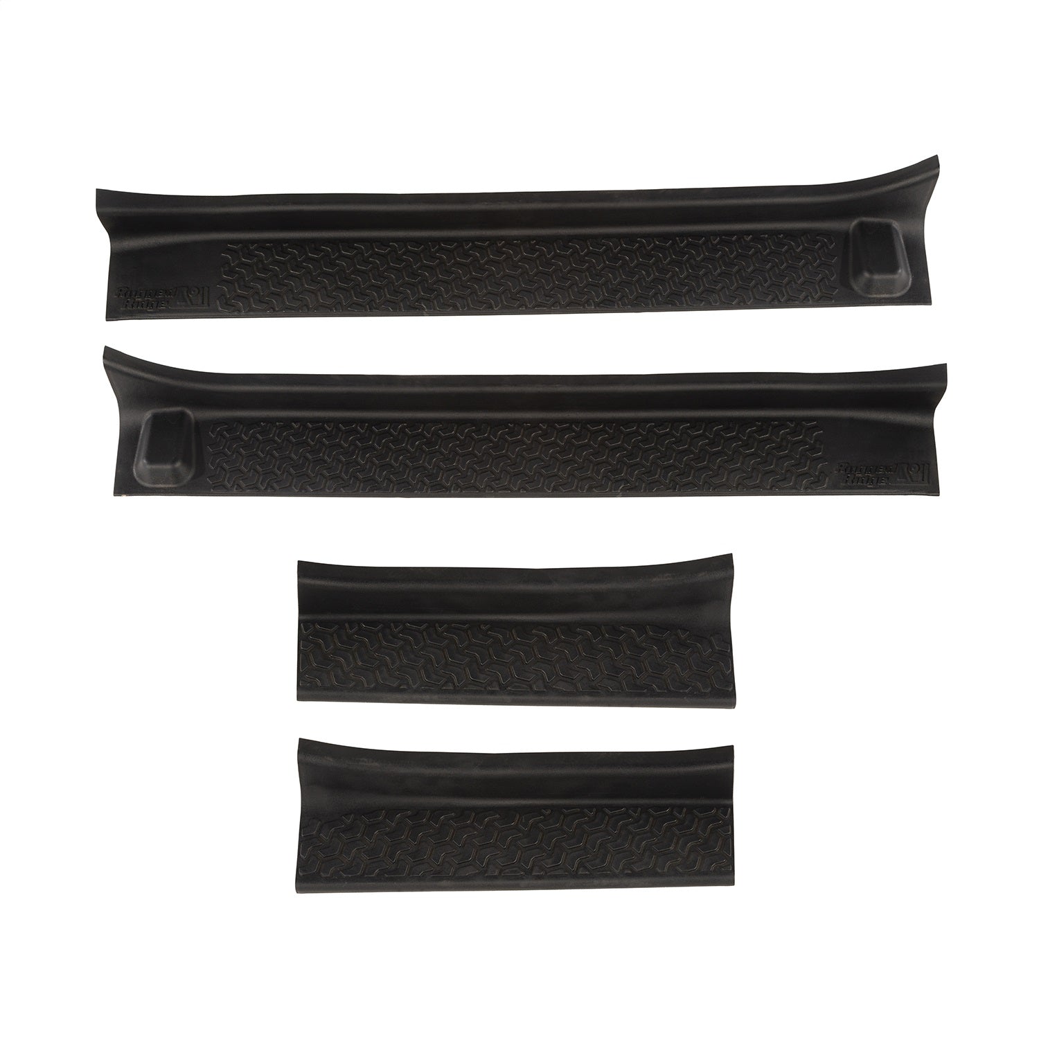 This 4 piece entry guard kit from Rugged Ridge fit 4 door 18-21 Jeep Wrangler JL and 20-21 Gladiator JT models.