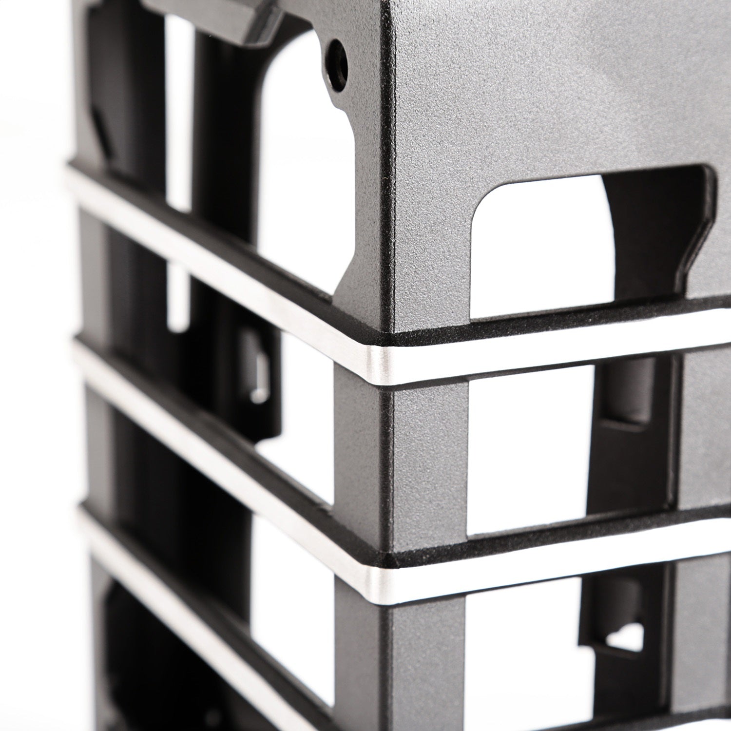 Are you looking for the perfect complement for the rear of your 07-17 JK? Look no further than the Rugged Ridge Elite Series Tail Light Guard. A stunning blend of black satin-textured powder coat over cast aluminum with brushed finishing details delivers unrivaled looks and equally impressive protection. Simple bolt-on installation with the included socket-head hardware and cast logo gives a smooth, finished appearance that looks great while the ingenious 2-piece design protects your tail lights like no other. Patent No. D802,810