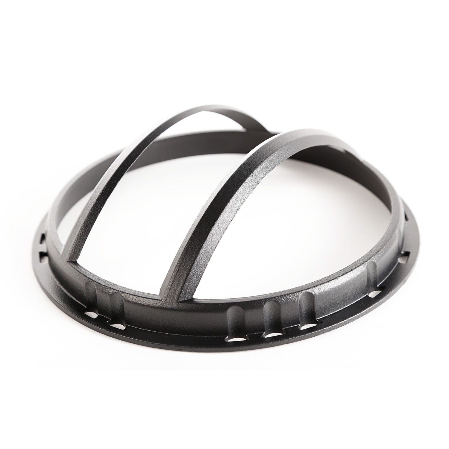 The Rugged Ridge Pivotal Headlight Euro Guards special patent-pending design allows for the guard to be rotated on the headlight for a variety of looks. The angry attitude of the Rugged Ridge Spartan Grille is amplified by the angled light guards, allowing you to make your own unique automotive expression. The Pivotal Euro Guard still retains the classic off-road styling of the original headlight Euro Guard but benefits from solid cast aluminum construction for a lightweight, but seriously sturdy, option in headlight protection, on and off-road. Pivotal Headlight Guards feature a premium textured black powder coat finish to accent any exterior color (Red Powder Coat and Raw Aluminum finishes are COMING SOON!). Installs easily in minutes using factory hardware and replaces the factory headlight retaining ring. (Sold in pairs) Patent Pending.