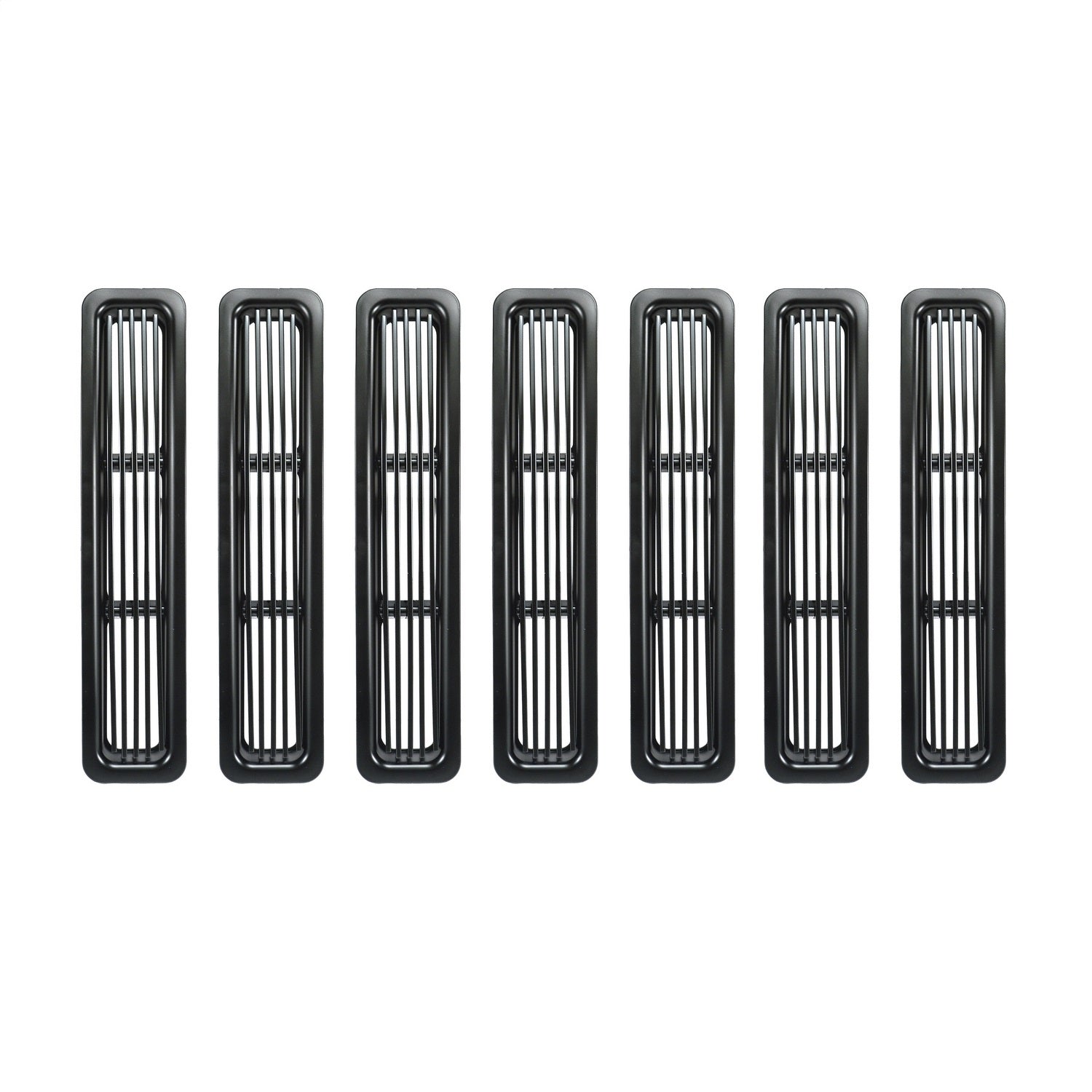 Durable UV treated inserts enhance the front of your Jeep. These inserts add great styling and a unique appearance. All Rugged Ridge inserts easily install without drilling or tools. Just click them in and go!