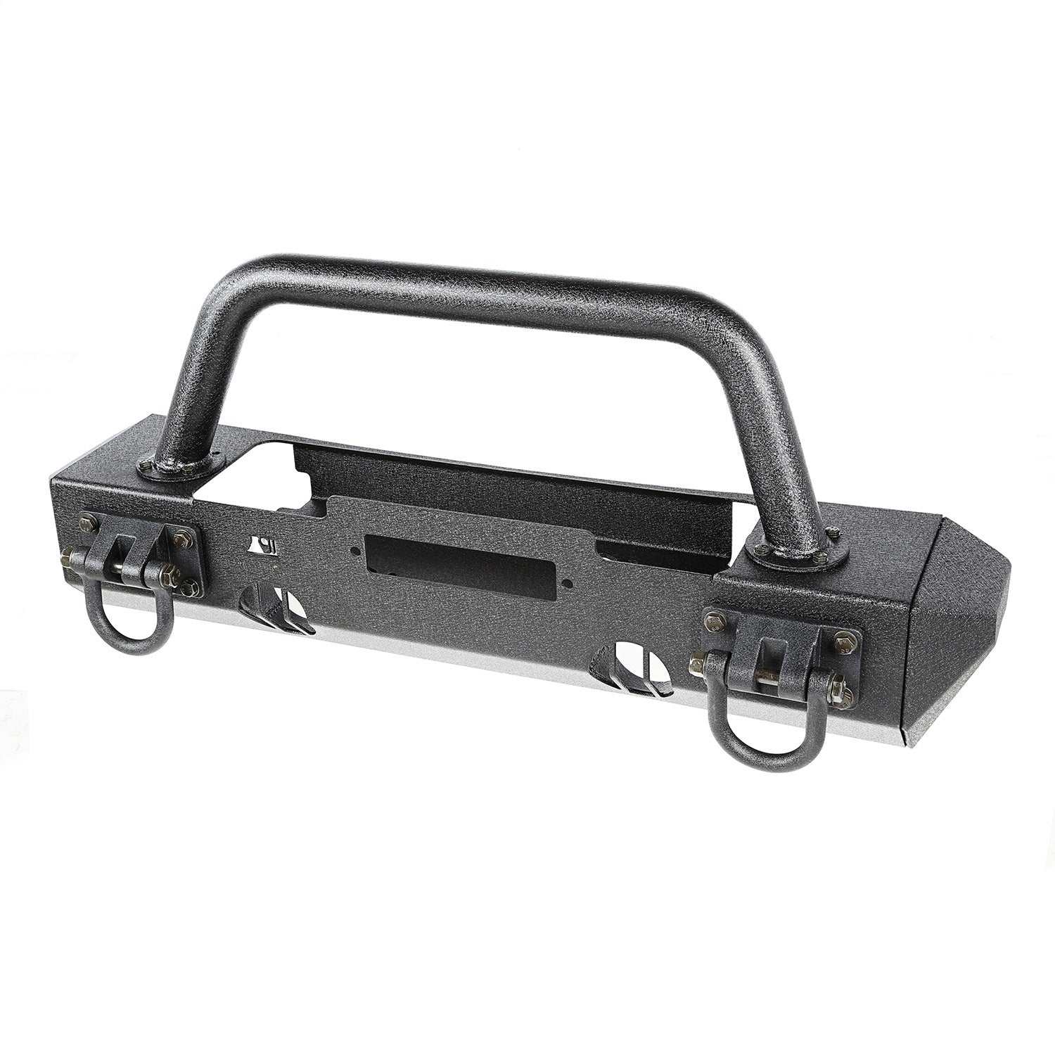This XHD front bumper kit from Rugged Ridge fits 07-16 Wrangler. Includes XHD front winch bumper, over rider hoop, D-rings, and stubby bumper ends.