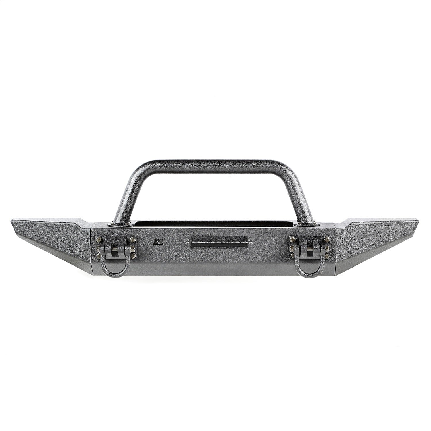 This XHD front bumper kit fits 76-06 Jeep CJ and Wrangler. Includes XHD front winch bumper, D-rings, Over Rider hoop, and standard bumper ends.