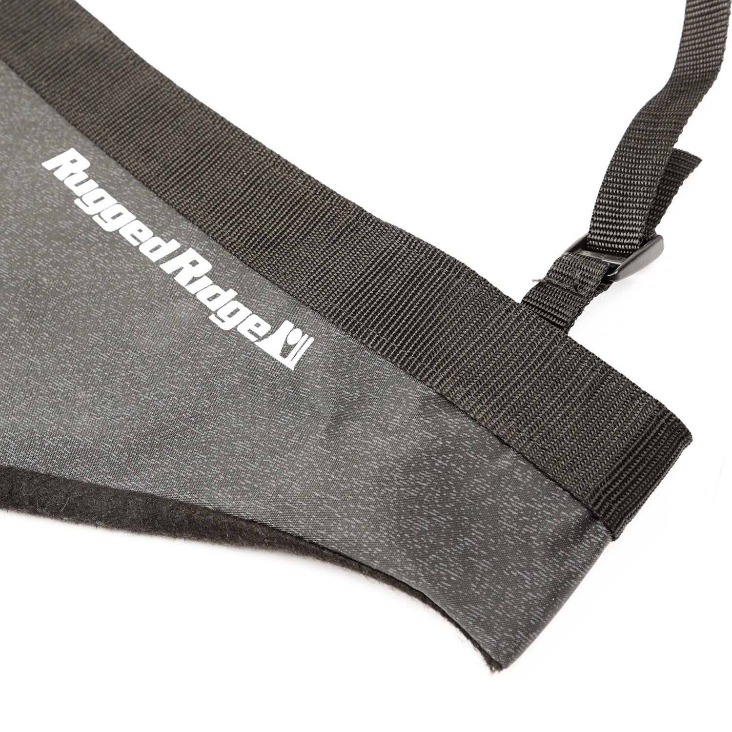This black hood bra from Rugged Ridge fits 07-18 Wrangler JK/JKU.