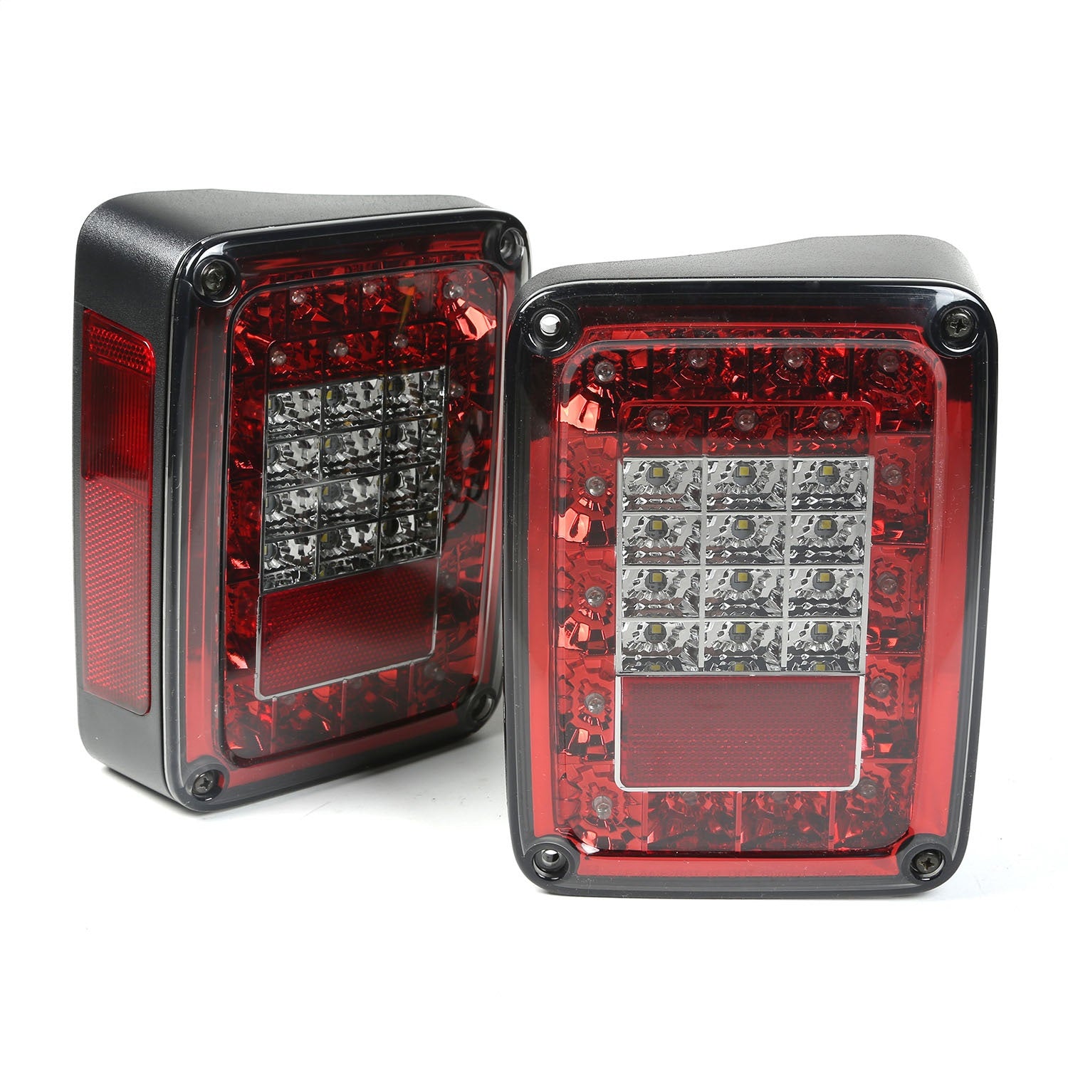 This pair of LED tail lights from Rugged Ridge have a smoke tinted lens. They fit 07-16 Jeep Wrangler.