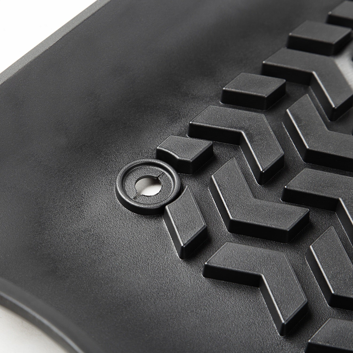 Rugged Ridge Floor liners provide complete protection for the cabin floor of your vehicle while keeping it looking factory fresh. Each liner is perfectly contoured to your vehicles floor for precise secure fitment (floor hook attachment where applicable). The raised lip captures all spills, water and debris keeping your interior pristine. The Chevron-shape patented Deep Tread Technology channels liquid away from your shoes keeping them dry. Made of a durable OE-quality Thermoplastic material that can withstand the rigor of daily abuse. Backed by our Limited Lifetime Warranty. Patent 8,163,369, D627,285, 2,699,641