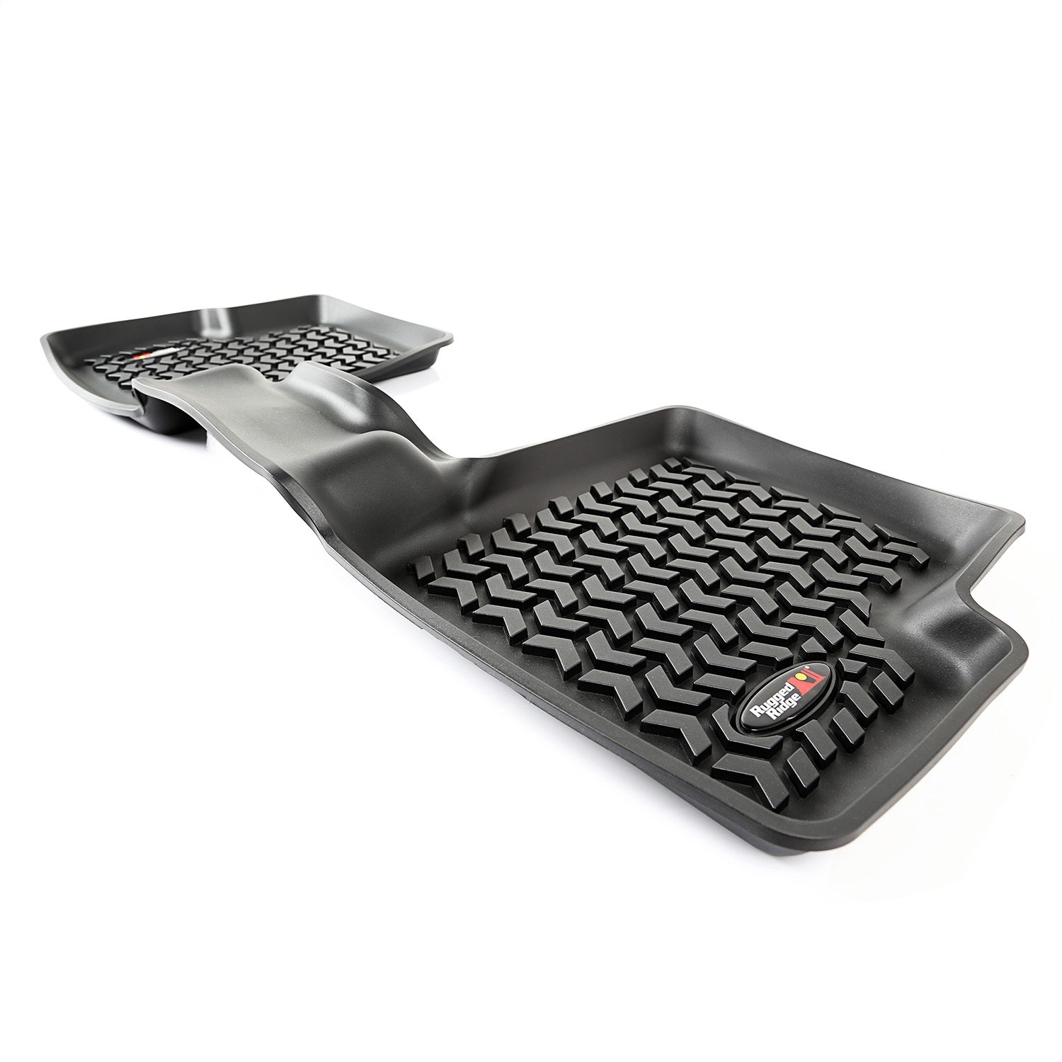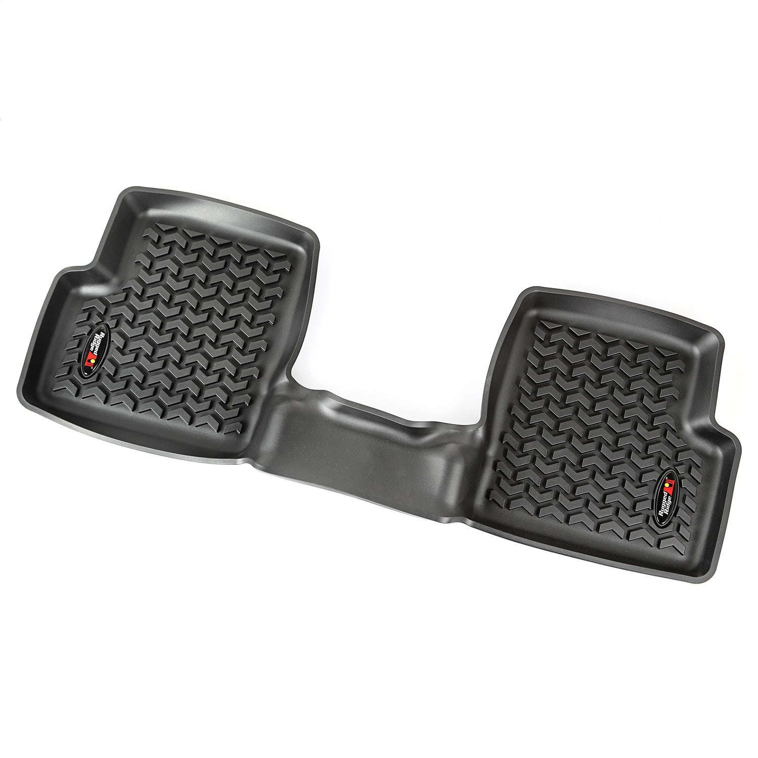 Need an affordable solution to keep the floors of your vehicle looking factory fresh? Rugged Ridge has you covered with this custom-fit black rear All-Terrain floor liner. Featuring a durable OE-quality thermoplastic material that can withstand the rigor of daily abuse, each liner is perfectly contoured to your vehicle's floor for precise secure fitment (floor hook attachment where applicable). The raised lip captures all spills, water and debris keeping your interior pristine. Features a chevron shape patented deep tread technology.