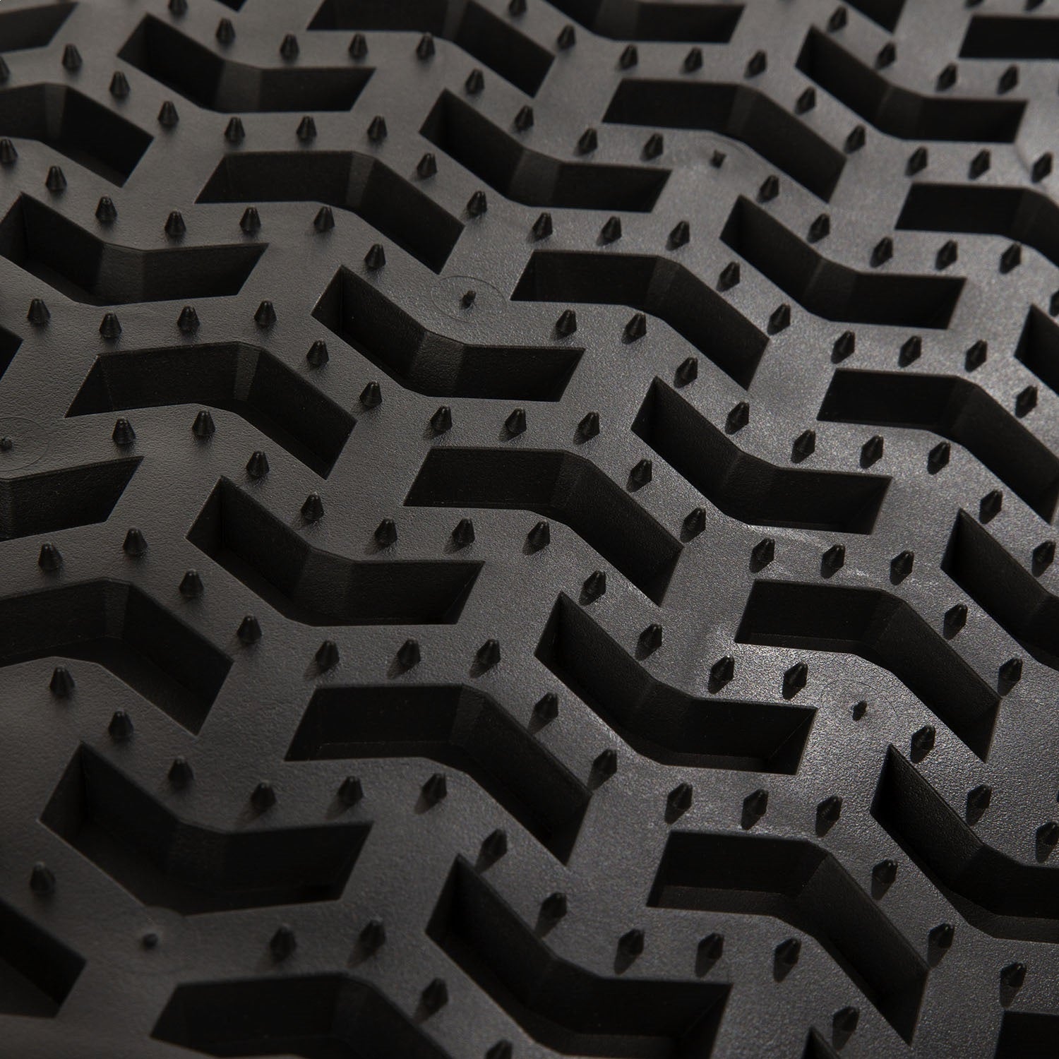 Rugged Ridge Floor liners provide complete protection for the cabin floor of your vehicle while keeping it looking factory fresh. Each liner is injection molded to keep it's shape in all temperatures and is perfectly contoured to your vehicle's floor for precise secure fitment (floor hook attachment where applicable). The raised lip captures all spills, water and debris keeping your interior pristine. The Chevron-shape patented Deep Tread Technology channels liquid away from your shoes keeping them dry. Made of a durable OE-quality thermoplastic material that can withstand the rigor of daily abuse. Backed by our Limited Lifetime Warranty. Patent 8,173,369, D627,285, 2,699,641