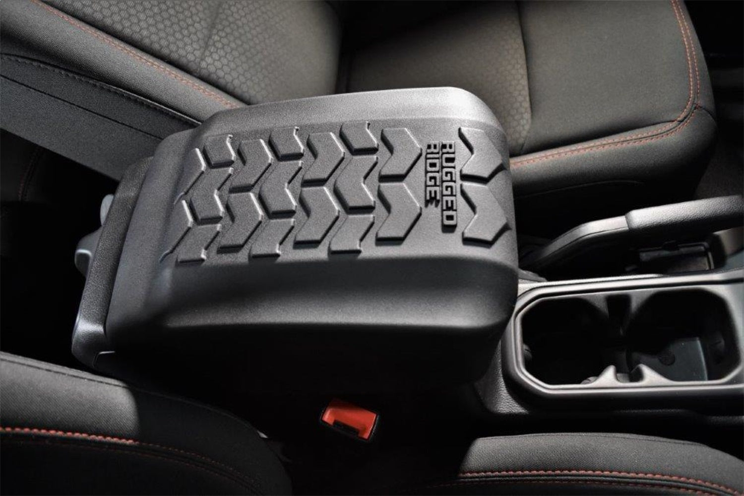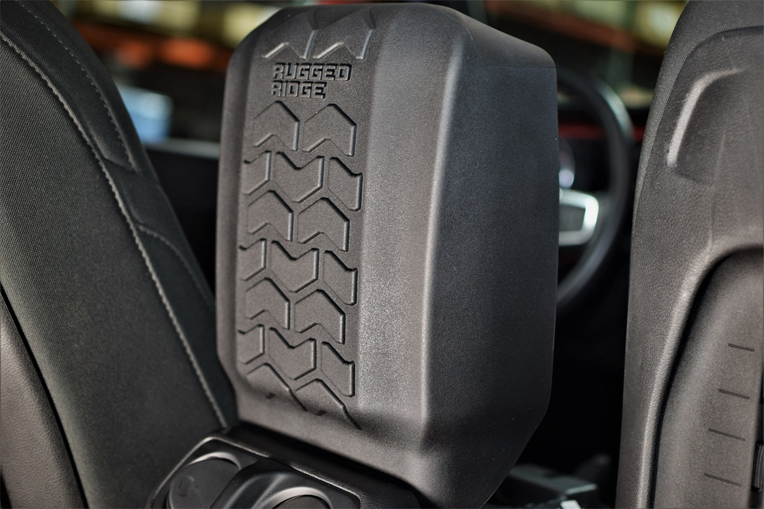 Rugged Ridge's All-Terrain Center Console Covers are designed to prevent the accelerated wear and tear common to Jeep interiors. Unlike cloth and leather covers, these heavy-duty covers will keep your center console lid in showroom condition for years to come. Molded from durable polyurethane foam, these covers create a durable barrier to protect the vulnerable console lid from scratches, rips, stains, and even damage from harsh pet claws, while also enhancing interior styling with Rugged Ridge's unique tread design. These covers install securely within seconds with the supplied automotive-grade adhesive tape. Patent No. D627,285
