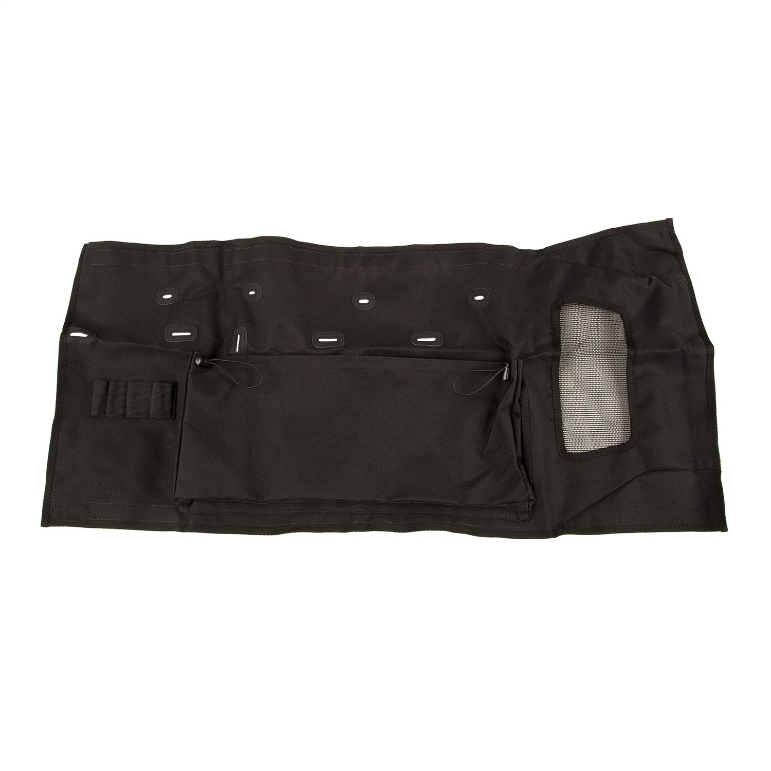A versatile Jeep(R) deserves versatile accessories and that's the reason we designed the Rugged Ridge C3 line of cargo area protection products. The C3 Tailgate Cover is the perfect complement to the Rear Cargo Cover or as a simple and effective way to make the most of your Wrangler JK's tailgate. Constructed from a durable weather-resistant 900 denier weave PVC material that is UV protected, the C3 Tailgate Cover protects the interior from scratches and scuffs while adding valuable storage space for tools, recovery gear or those crucial fluids that always tumble around in the back. Each C3 Tailgate Cover mounts securely with the included hook and loop fasteners so the install is quick and easy and allows for simple removal. An integrated mesh screen aids with air flow through the cover to the factory vent grille.