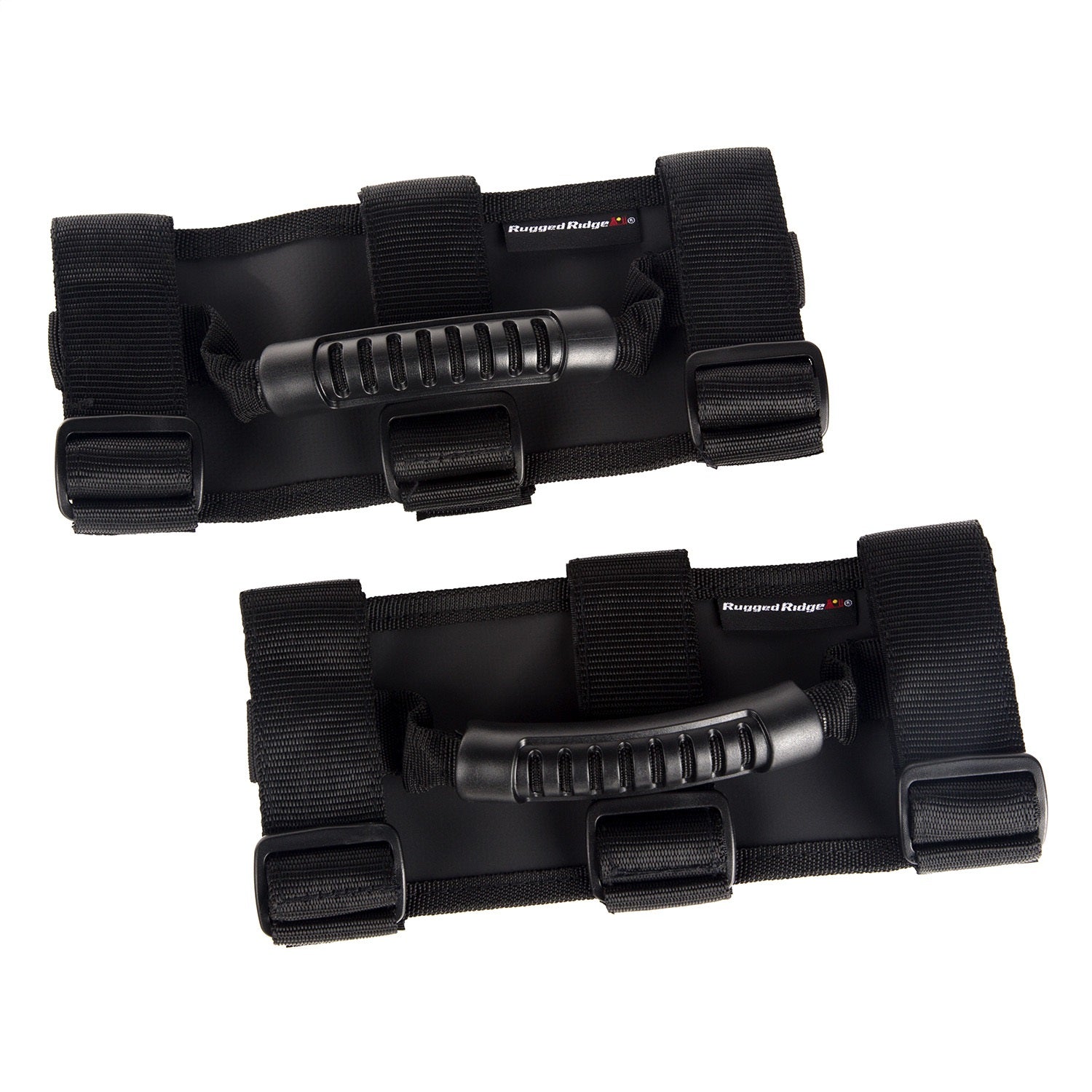 This pair of black ultimate grab handles from Rugged Ridge fit all2 inch to 3 inch sport bars found in 55-21 Jeep CJ and Wrangler and 20-21 Gladiator JT.